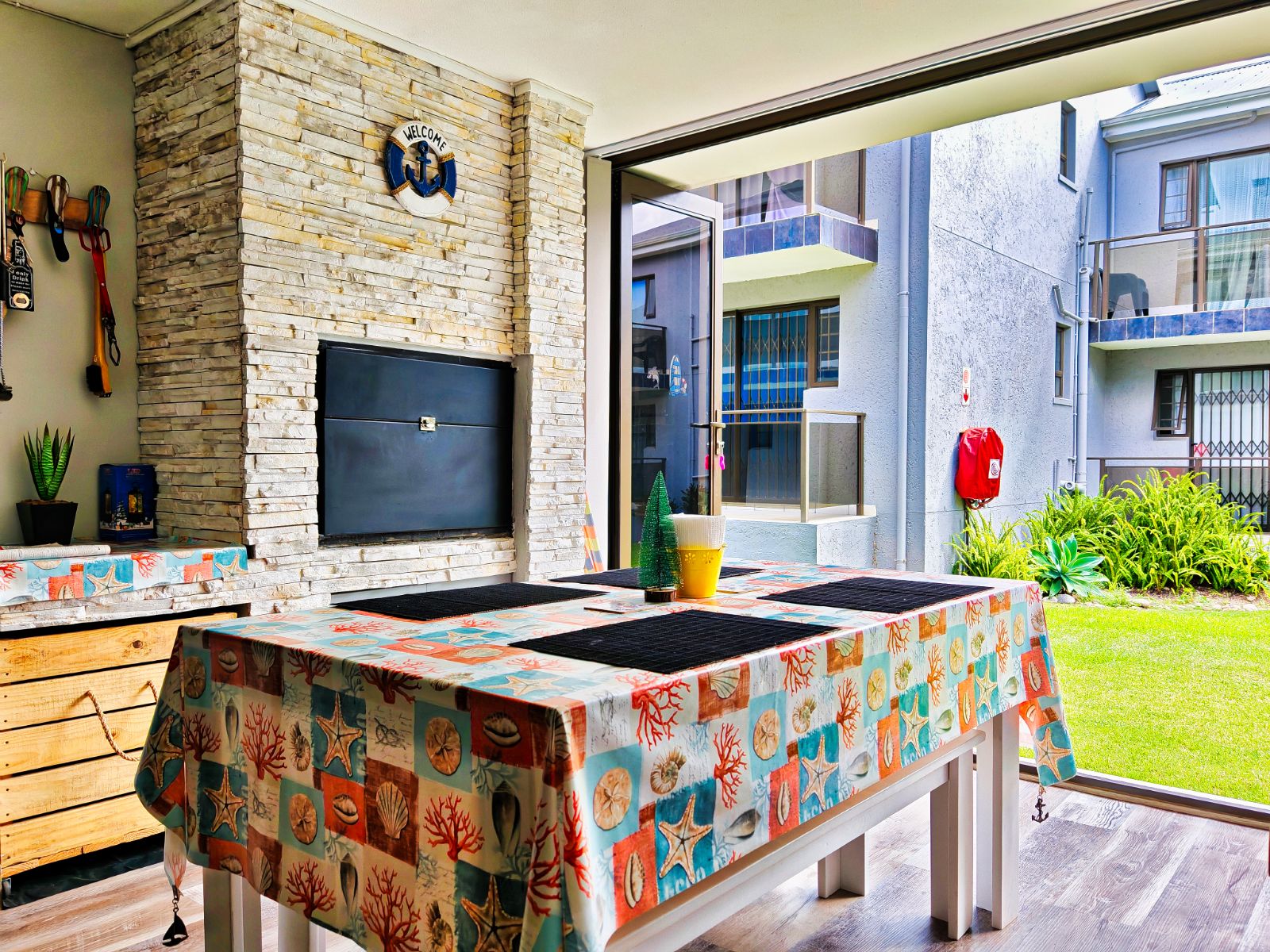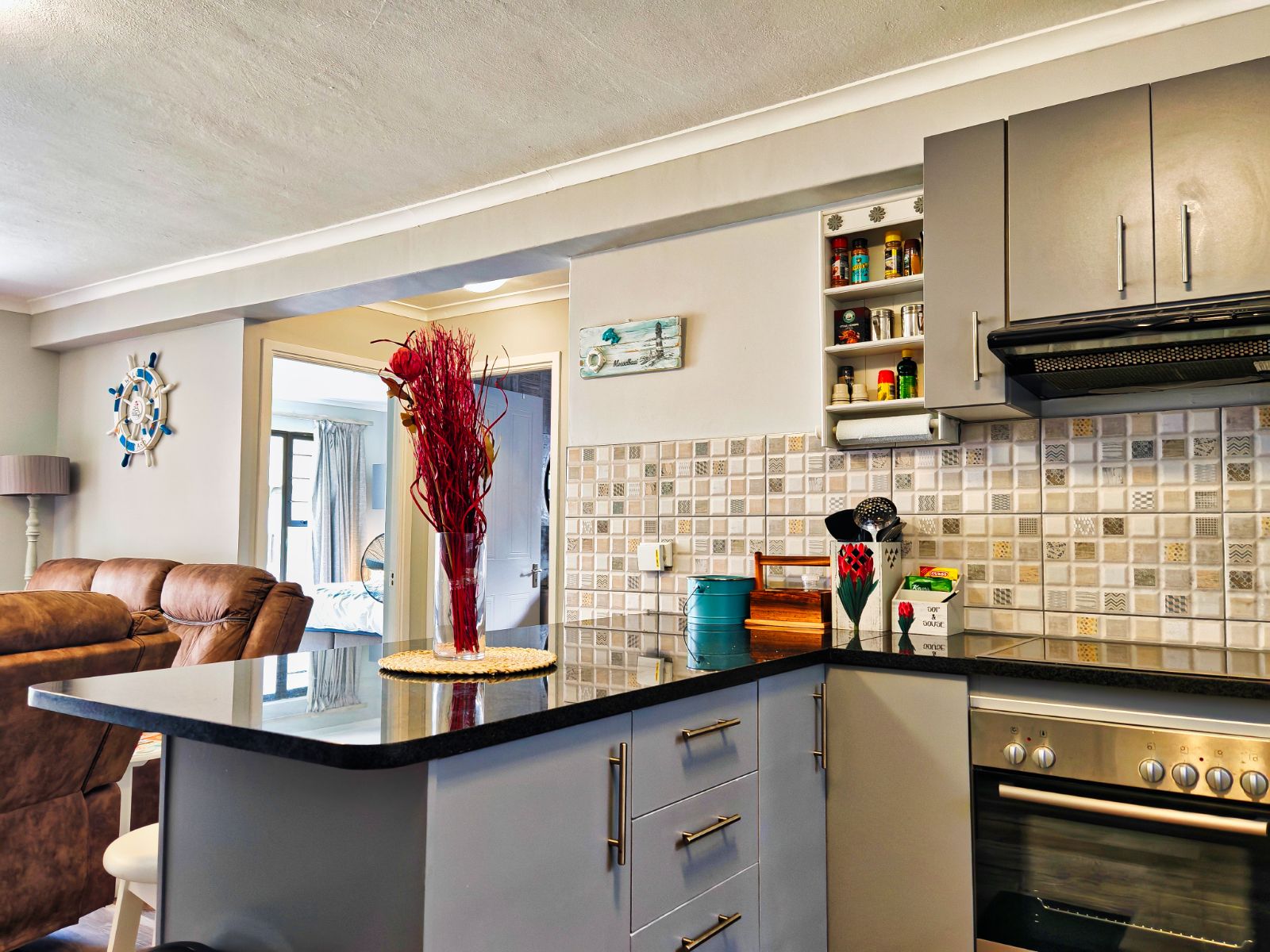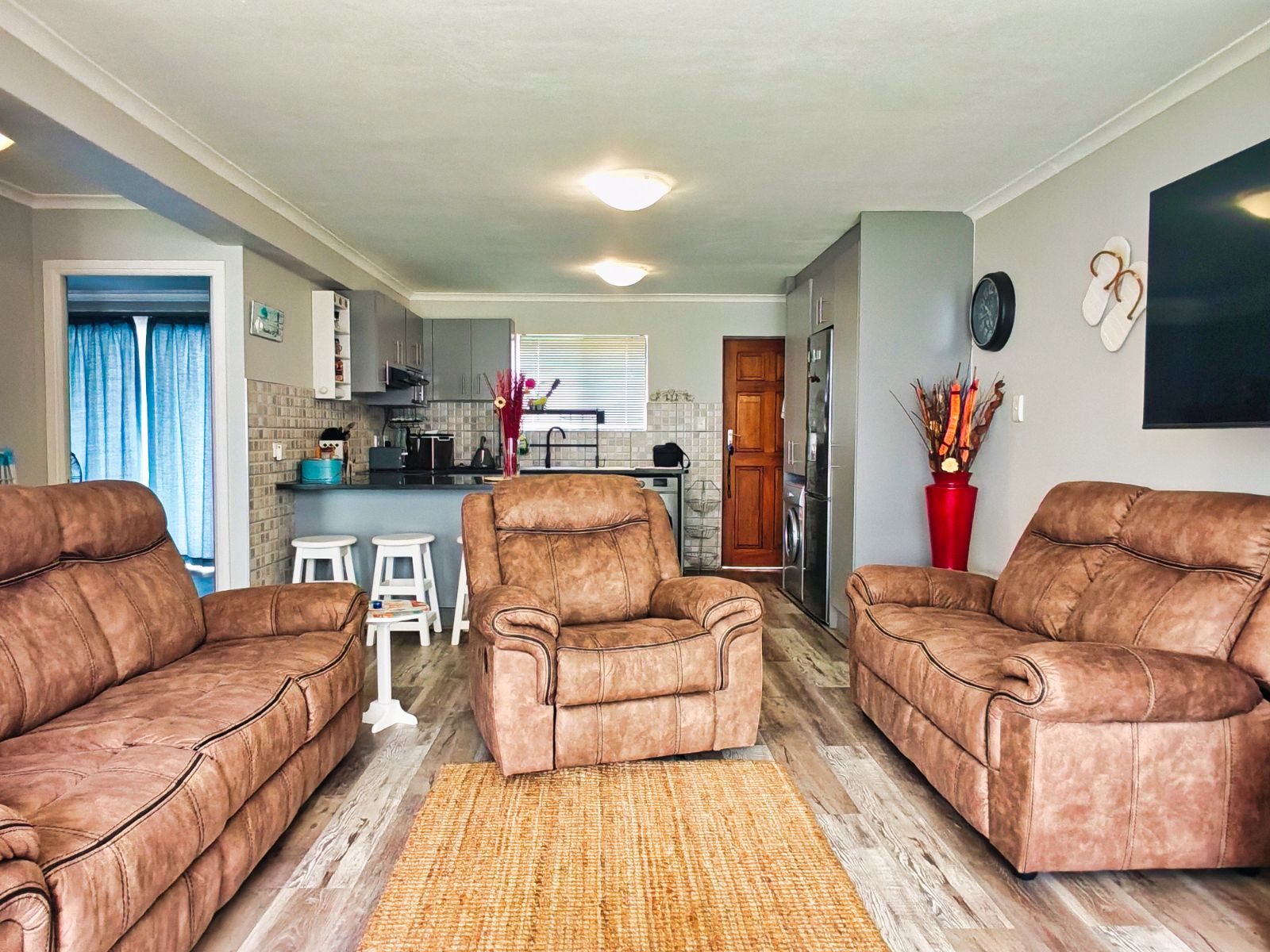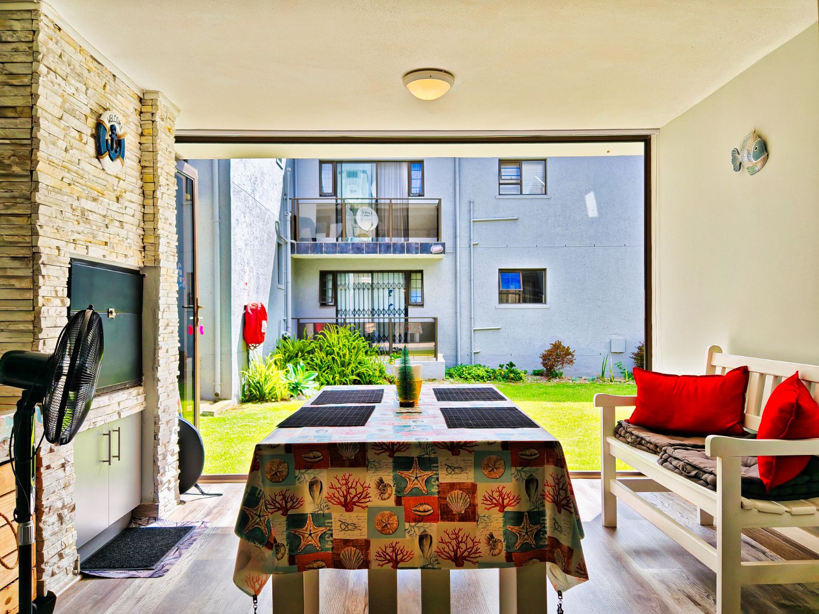 This beautifully renovated ground-floor apartment in Hartenbos offers modern comfort and convenience in a prime location. Upon entering, you are welcomed into a spacious open-plan living area that seamlessly combines the kitchen, living room, and braai room. The braai room features elegant stacked doors, allowing for an effortless indoor-outdoor flow.