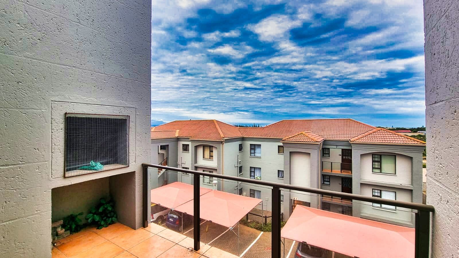 The balcony features a built-in braai, perfect for weekend gatherings or enjoying a relaxed evening at home.