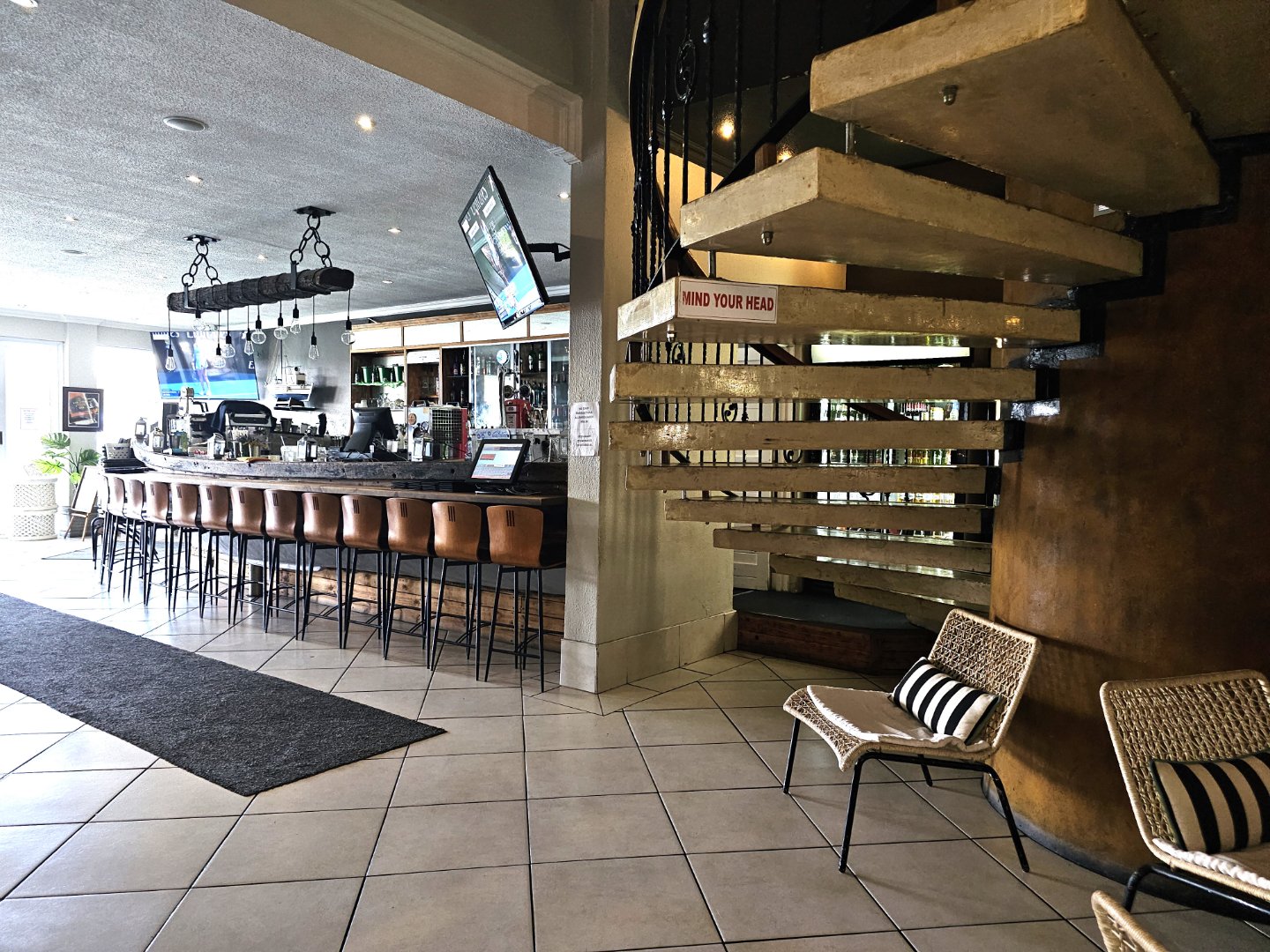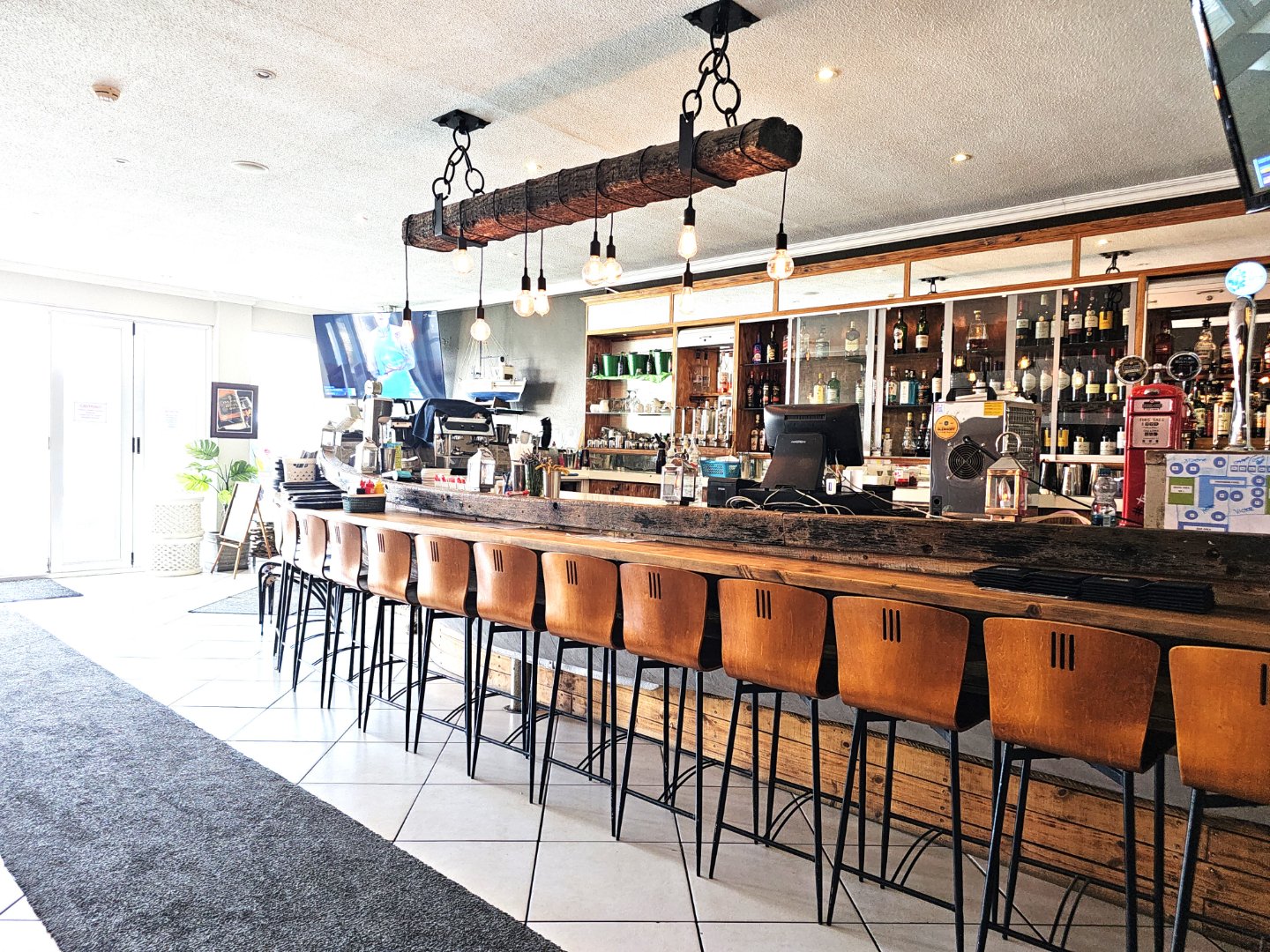 A fully operational bar, restaurant, and commercial kitchen, open to the public