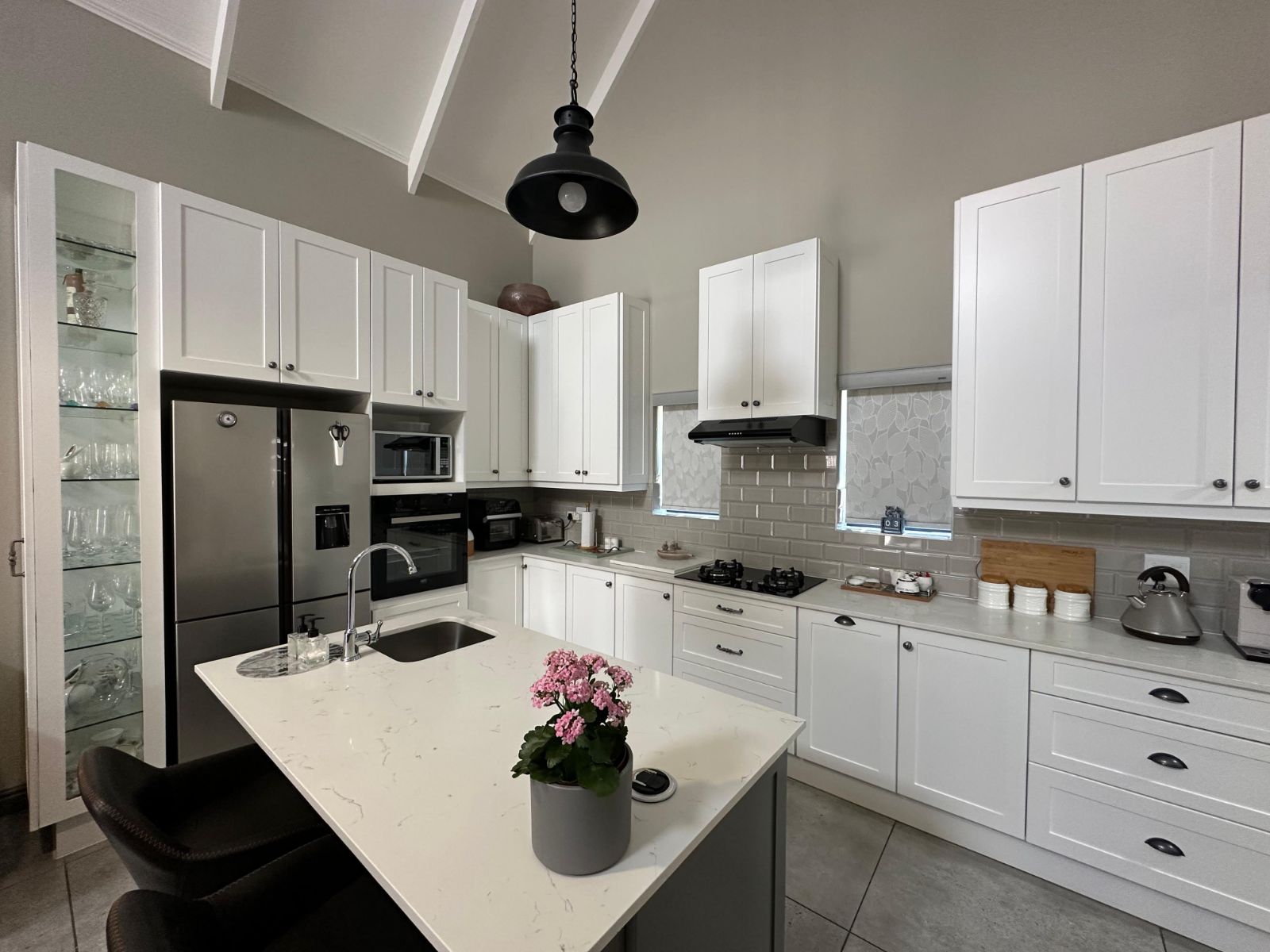 Modern Kitchen: The well-appointed kitchen includes ample storage, sleek finishes, and quality appliances, making it a practical and inviting space for meal preparation.