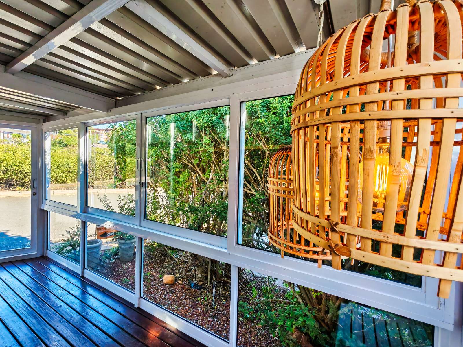 Step into an inviting open-plan living area seamlessly connected to a modern kitchen. Wooden doors open onto a sheltered braai area—perfect for relaxing with friends and family. Additional stack doors enhance the flow between indoor and outdoor spaces, ideal for entertaining.