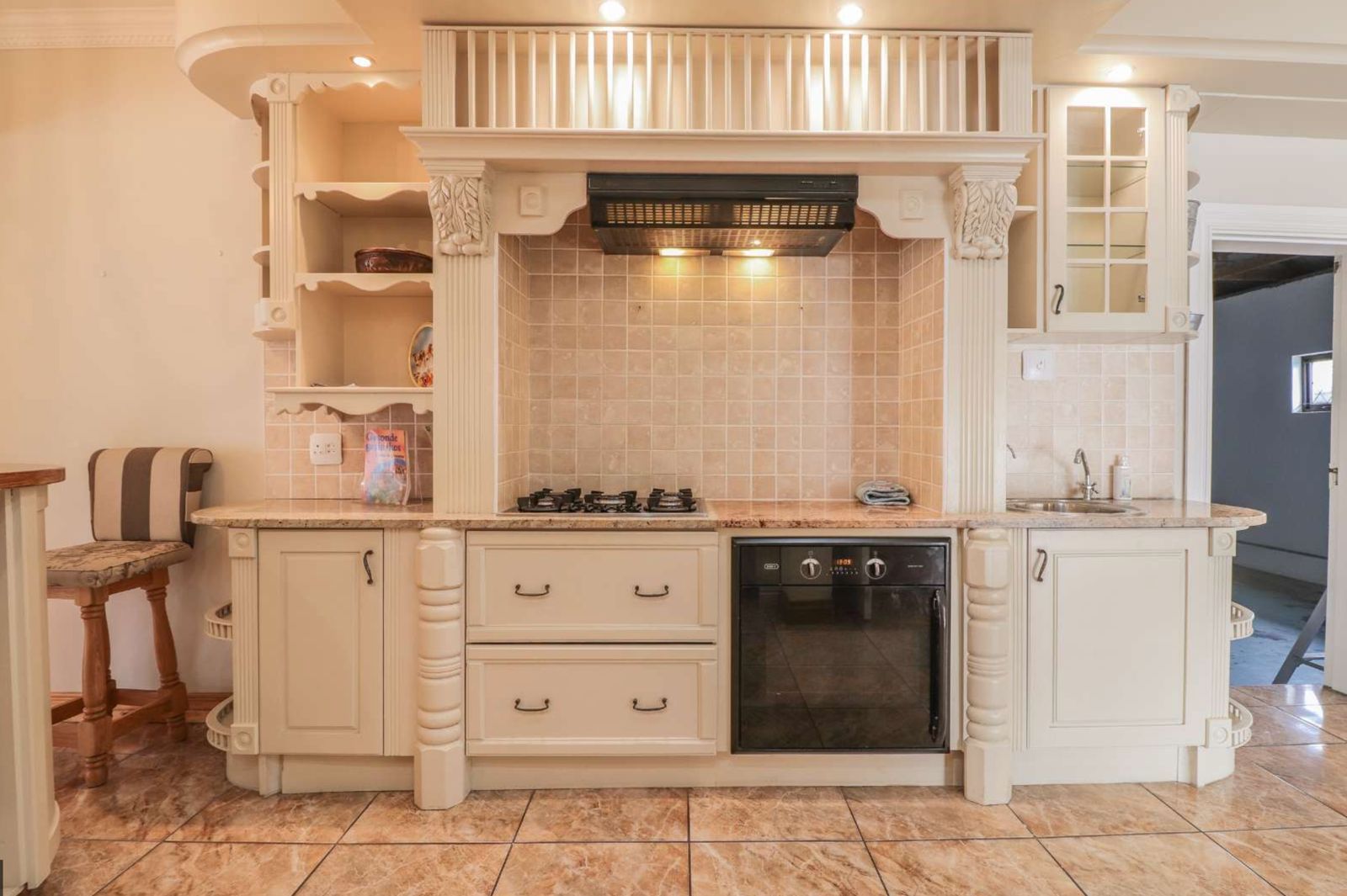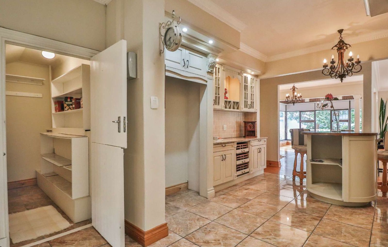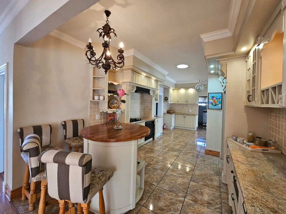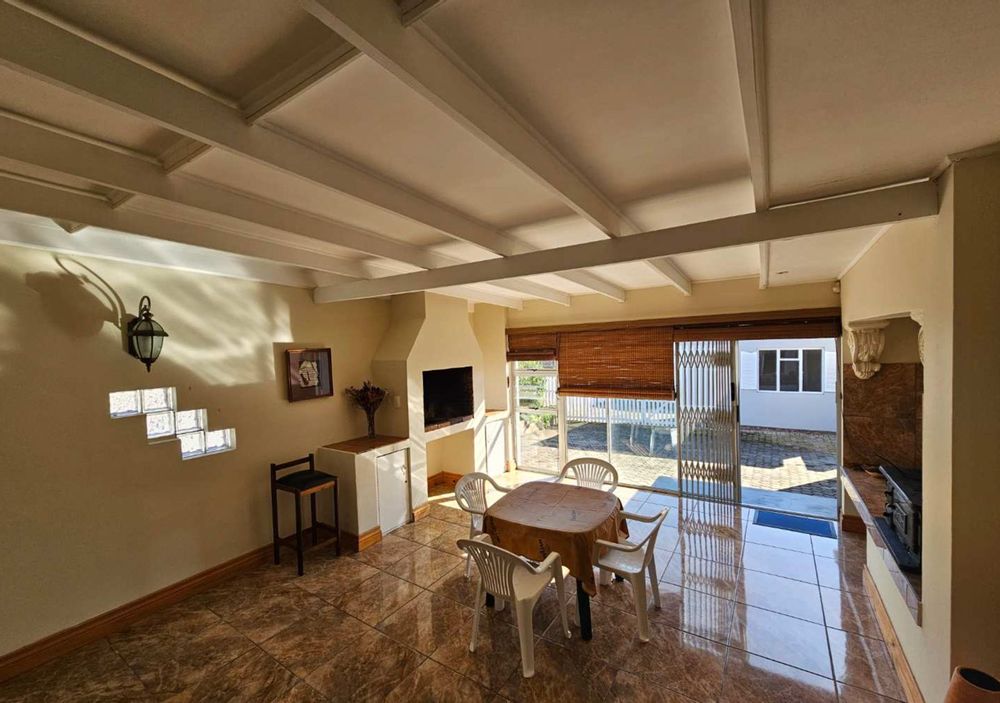 The kitchen is a culinary showpiece featuring abundant cabinetry, a separate scullery, and an expansive pantry—designed for passionate cooks and lively gatherings. The three versatile living areas include a fully enclosed braai room with a cozy coal stove, creating the perfect space for year-round enjoyment.