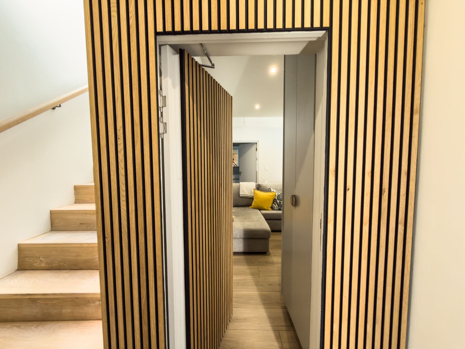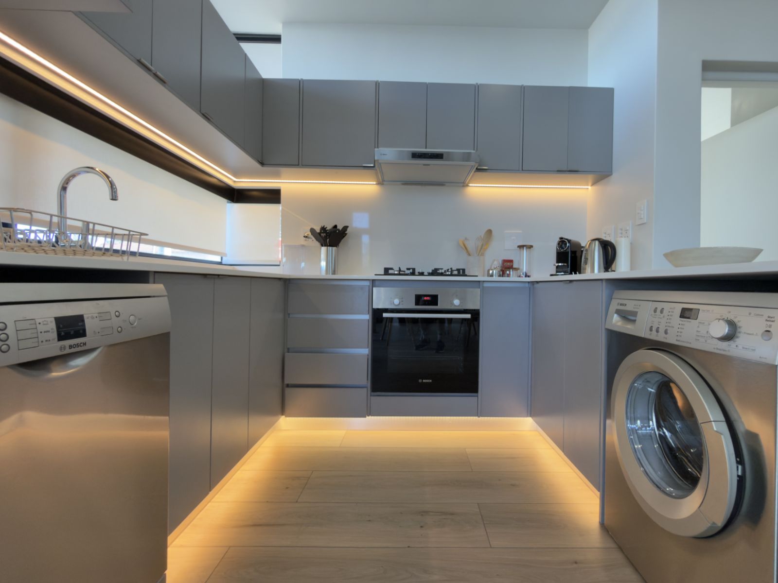 The home is cleverly designed across two levels, each featuring its own modern kitchen, spacious lounge, dining area, two bedrooms, and two bathrooms. A private lift seamlessly connects both floors, offering effortless convenience and flexibility for extended family living or guest accommodation.