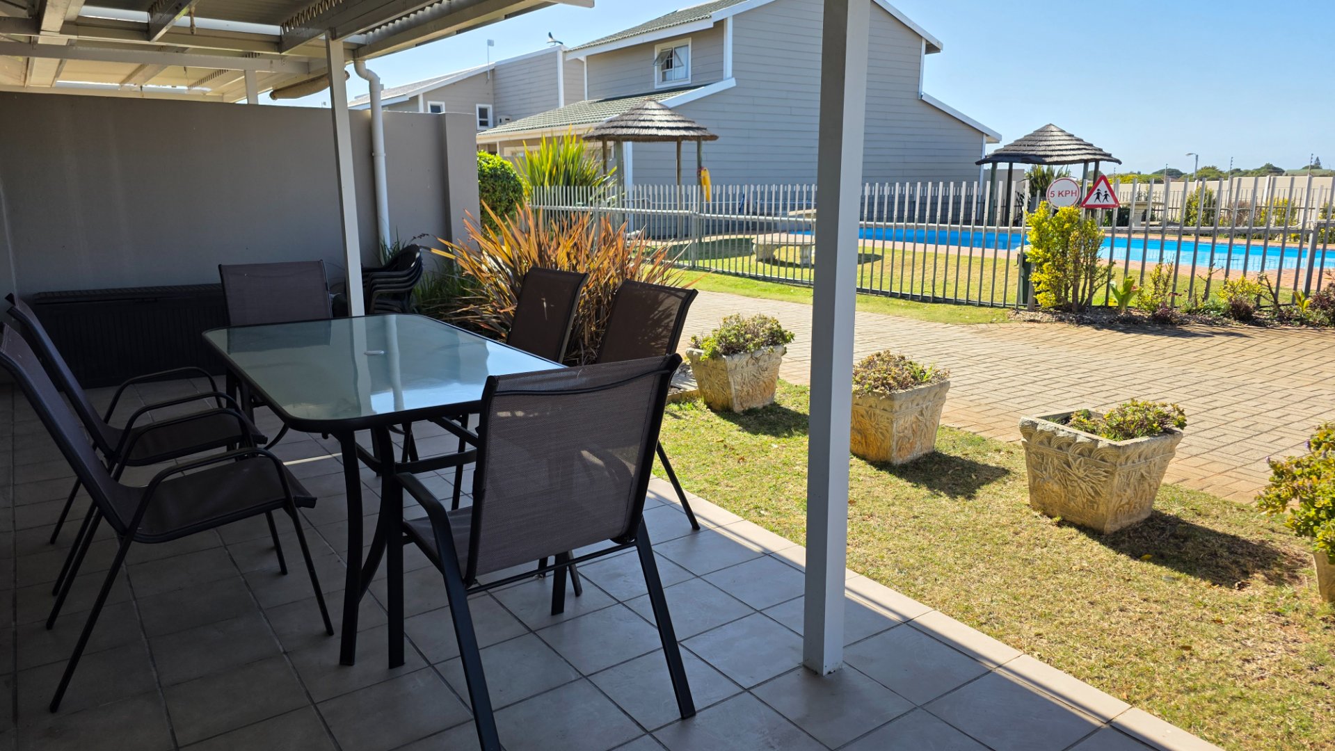 Just reached the market and just in time for the long December holiday ahead and you can this year relax at your own holiday home in Hartenbos and be in close proximity to all holiday attractions for you to enjoy. An open plan living area with kitchen, one bedroom, one bathroom as well as a double carport with a built-in braai are all situated at ground floor level and upstairs another bedroom with a bathroom that is ideal for your kids. The louvred canopy in front of this house will ensure that you can spend quality time in the shade whilst having a braai and watching the kids enjoy themselves at the swimming pool just across the street. This very popular complex with low and affordable levies is well located and well maintained to ensure that you can lock-up and go whenever you want but still rest assured that your holiday home is in good hands and awaiting your return. This holiday home is excellently situated at a corner stand in the complex and with the complex electrically fenced you can feel safe and have peace of mind when not on holiday. For more information or appointment to view you are welcome to contact me.