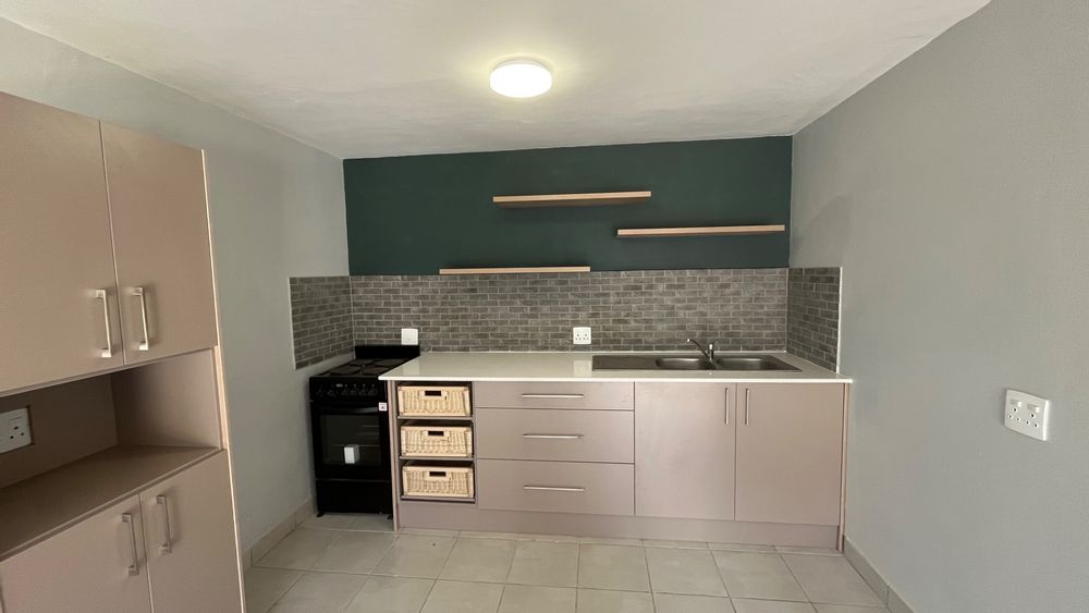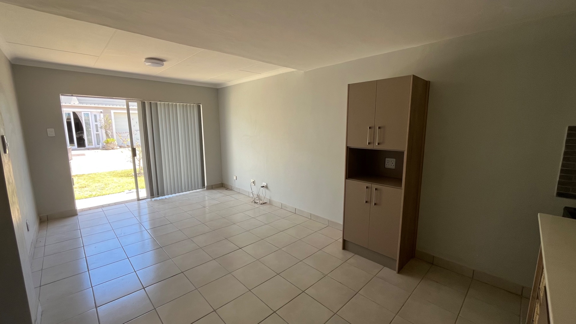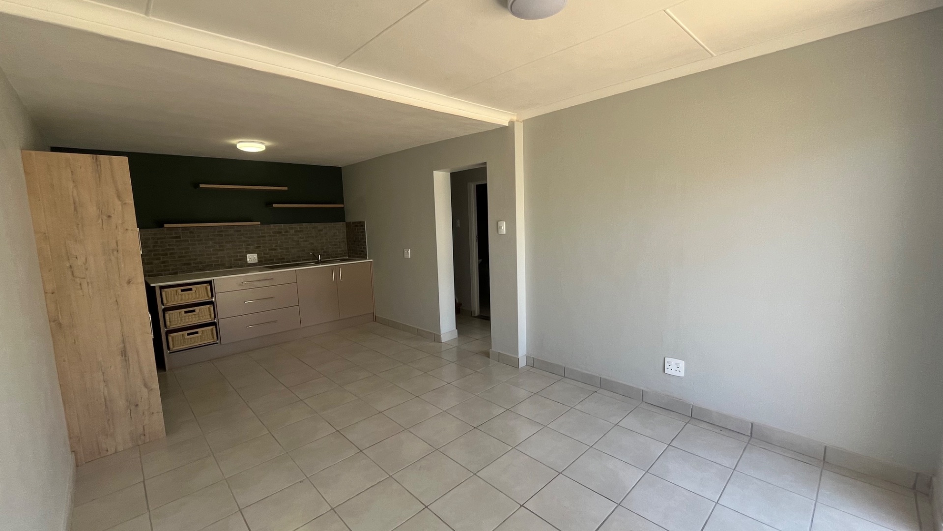 Open – plan Kitchen and Lounge with sliding doors leading outside