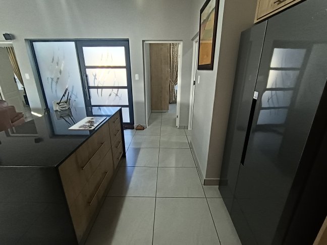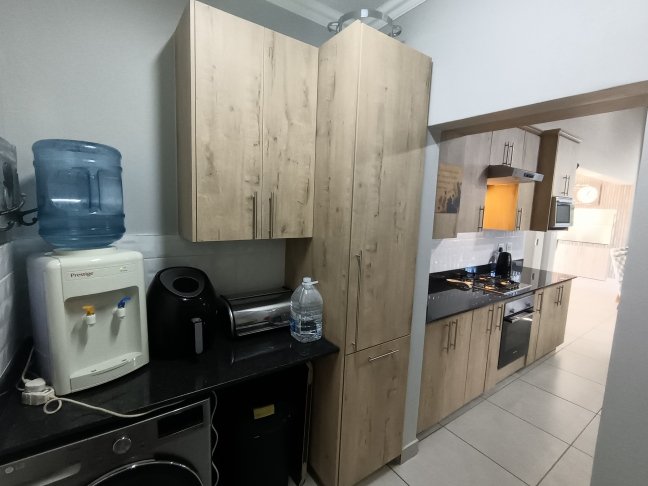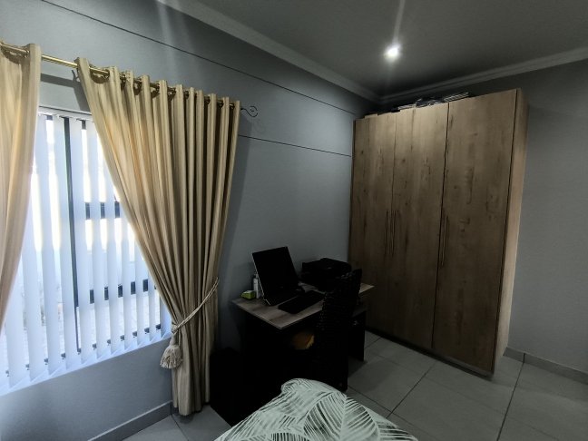 The house is fitted with a gas geyser system. The en-suite bathroom offers a shower, his and hers basin and toilet. The 2nd bathroom is fitted with a shower, basin and toilet. The yard is fully enclosed with electric gate motor, grass and stone on pavement. A wendy house in the back yard for extra storage. The house is newly build and offers beautiful finishes and plenty of extras. Just move in.