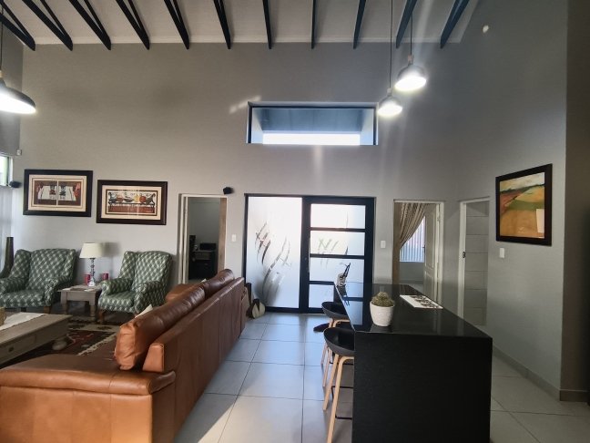 Situated on the Northern slopes of Hartenbos Heuwels one can enjoy easy access to all the facilities that Hartenbos has to offer. The house comprise out of 3 bedrooms, 2 bathrooms and open plan living area. The living area has exposed ceilings with ample space for a tv room and dining room. There is a built in braai and stacked doors that opens up onto the backyard to enjoy the outdoors.