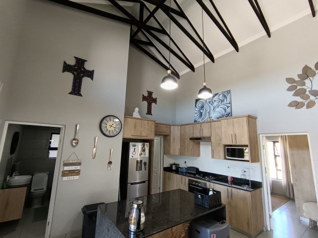 It is a single level, totally enclosed yard with automated gate and garage door. The house comprise out of 3 bedrooms, 2 bathrooms, open plan living area, tv room and built in braai room. The kitchen is beautiful and functional. It has a separate scullery. It has a gas hob and solar geyser.