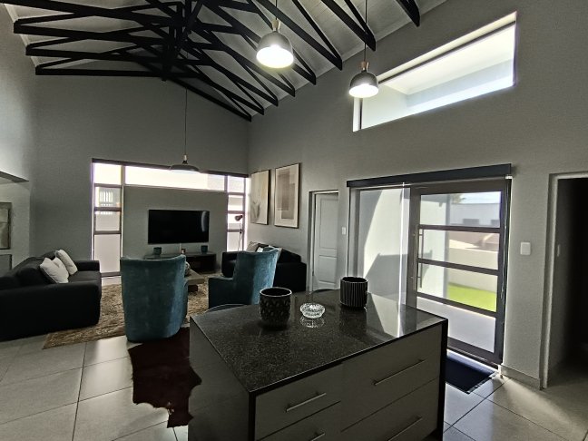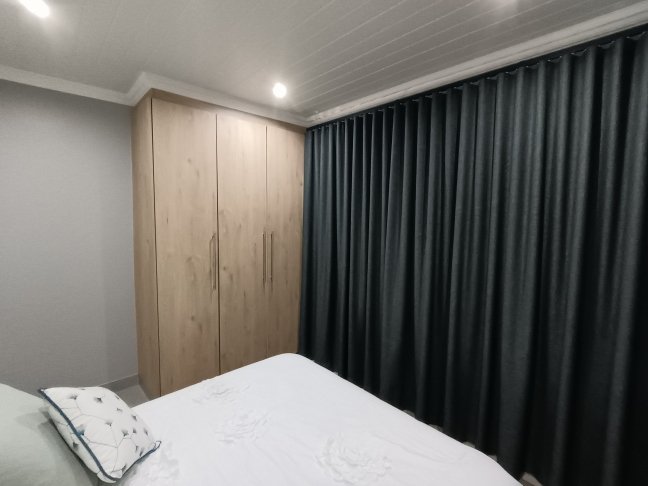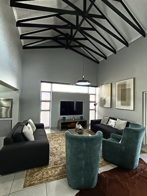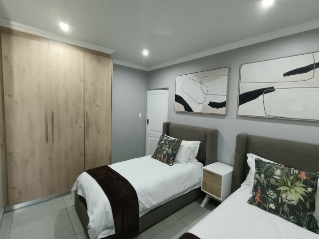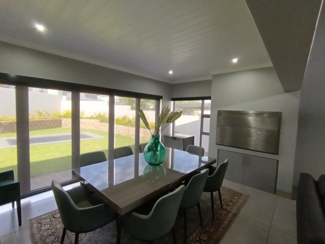 Just some of the extras: levelled yard with automated irrigation system, plenty of grass, pebbles on the pavement, Fully enclosed with electric gate, Trampoline for the kids, spectacular blinds and curtains, intelligent solar geyser system, gas hob, burglar bars in front of the opening windows, automated garage doors, stacked doors that opens up onto the back yard, built in braai.