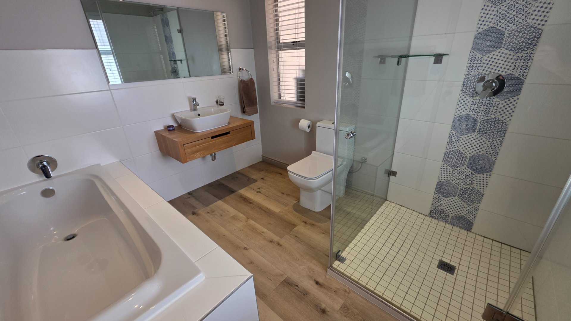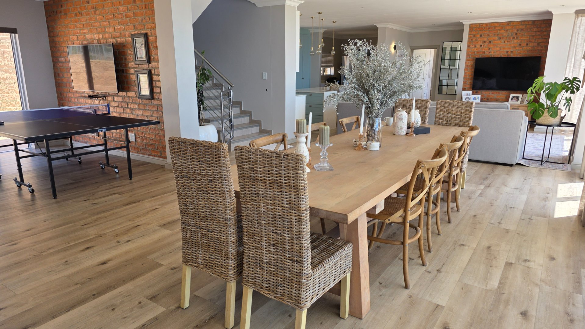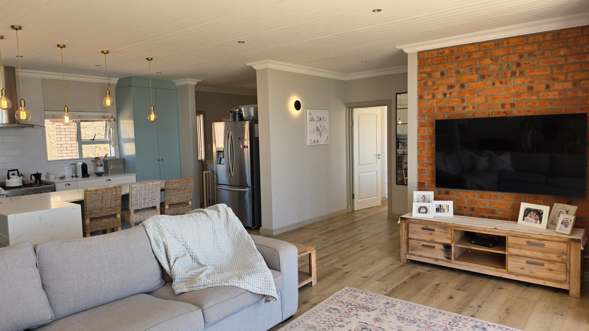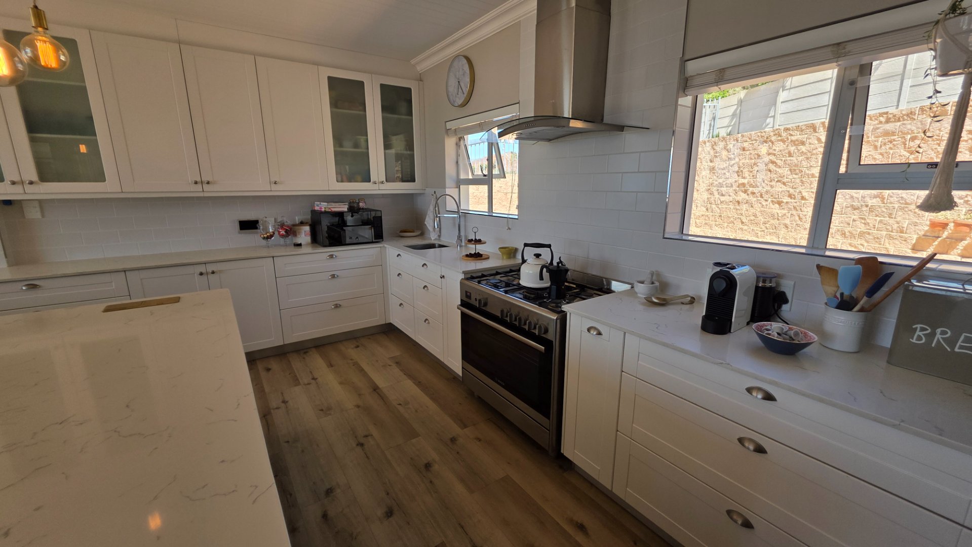 This remarkable residence combines contemporary design, practical living and breathtaking natural surroundings whilst featuring four generous bedrooms with three full bathrooms and every space showcases uninterrupted ocean views, bringing coastal living right to your doorstep. The main bedroom includes an open-plan full bathroom complete with a stylish free-standing bath and at the centre of the home is a modern, well-appointed kitchen with a separate scullery, perfectly suited for everyday use and effortless entertaining. The property offers multiple living areas, including three lounges, a dedicated braai room, and an impressive rooftop patio ideal for enjoying sweeping sea and mountain vistas, the perfect setting for sunset cocktails. The extra-large 90 m2 automated garage easily accommodates a caravan and reflects the home’s balance of luxury and practicality. Additional thoughtful features include wheelchair-friendly design, a portable plug-in inverter system that powers Wi-Fi, television, and select lighting during load shedding, as well as solar panels for the solar geyser and there is also a staff bathroom conveniently located next to the garage. Ideally situated close to both the beach and town, this home is ideal for those seeking space, elegance, and extraordinary surroundings and all custom-made curtains are included in the sale. For more information or appointment to view you are welcome to contact me.