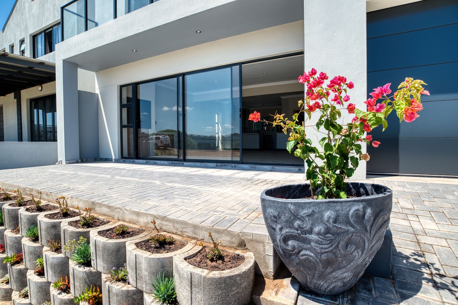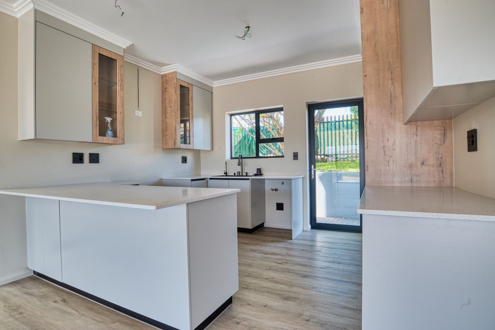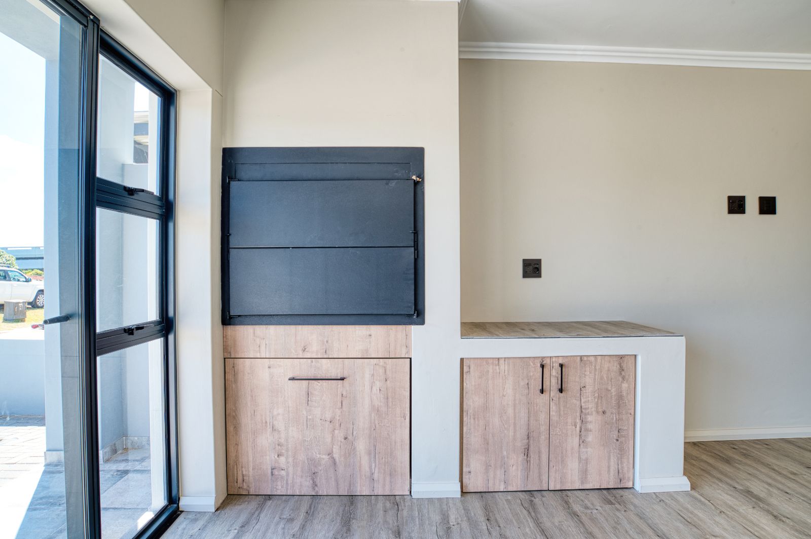 This newly built home is perfectly positioned next to the Hartenbos Lagoon, offering a relaxed lifestyle with scenic surroundings. Upon entering, you are welcomed into an open-plan living area designed for effortless flow and entertaining. To the left, an indoor braai enhances the living space, while the modern open kitchen is located at the back of the home. A conveniently placed guest toilet is situated to the right.