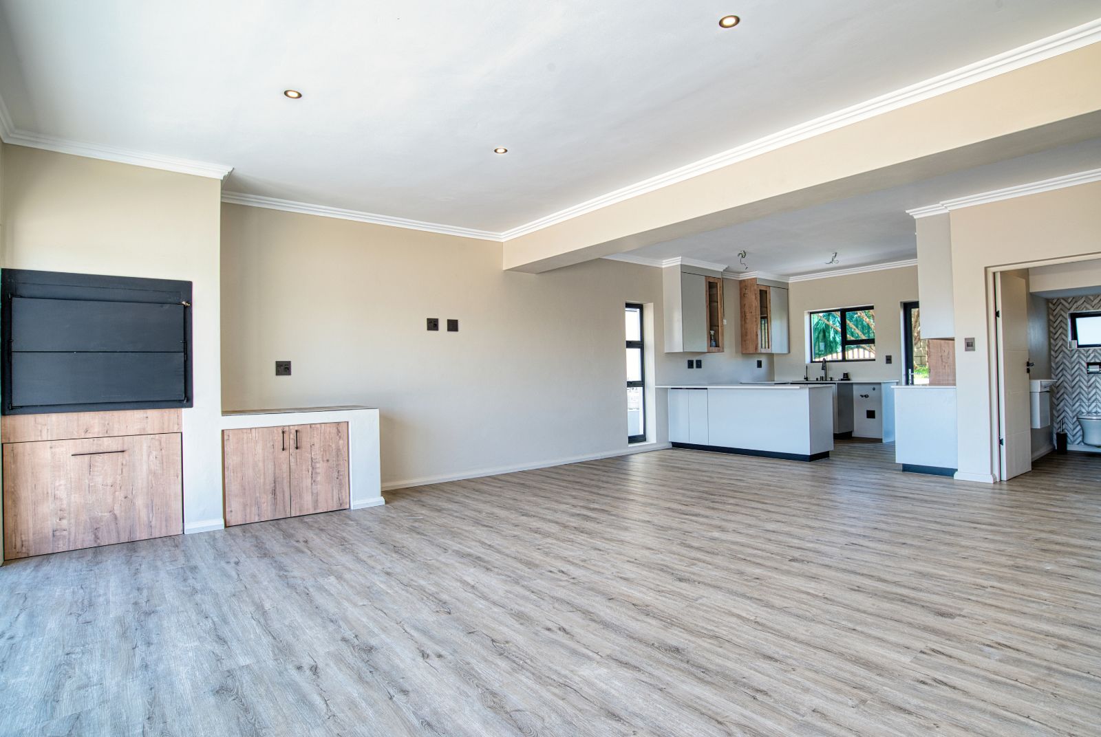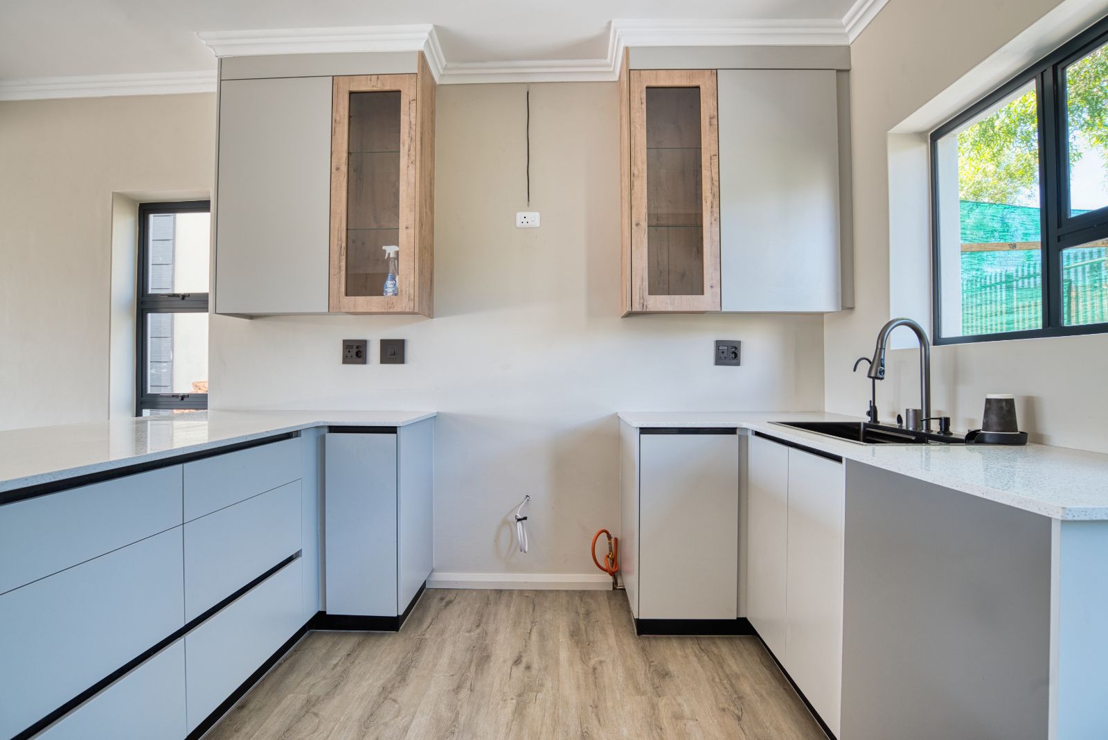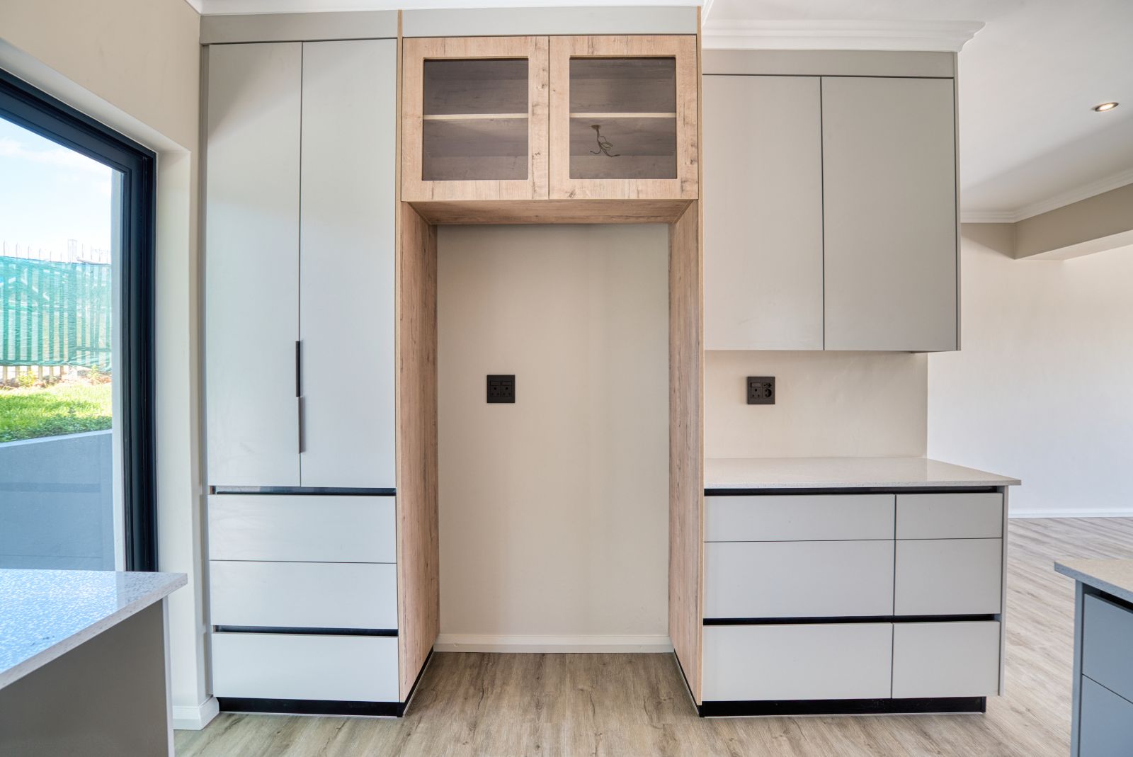 This newly built home is perfectly positioned next to the Hartenbos Lagoon, offering a relaxed lifestyle with scenic surroundings. Upon entering, you are welcomed into an open-plan living area designed for effortless flow and entertaining. To the left, an indoor braai enhances the living space, while the modern open kitchen is located at the back of the home. A conveniently placed guest toilet is situated to the right.