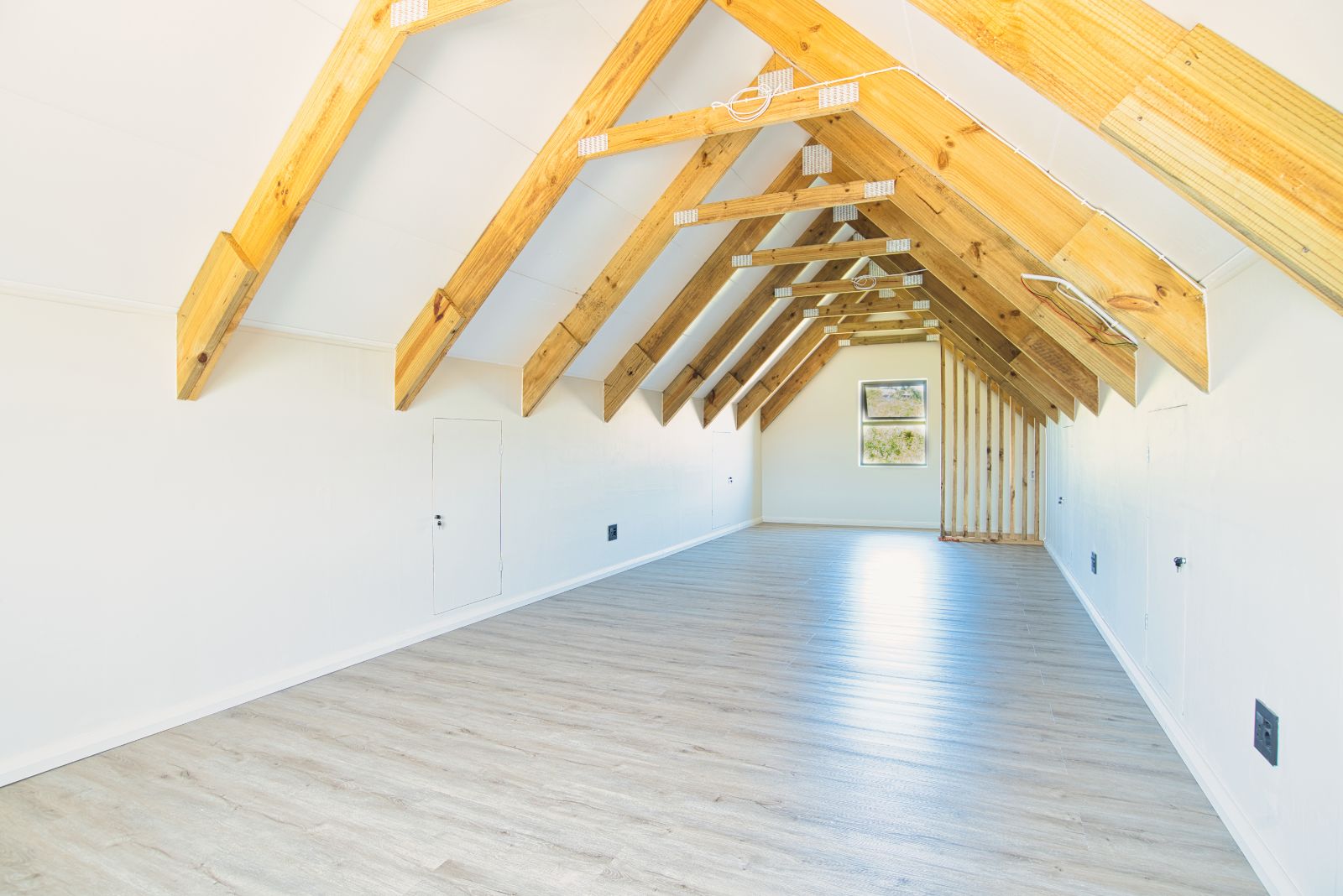 An additional staircase leads to a spacious loft area, providing endless potential for a home office, entertainment room, or additional living space.