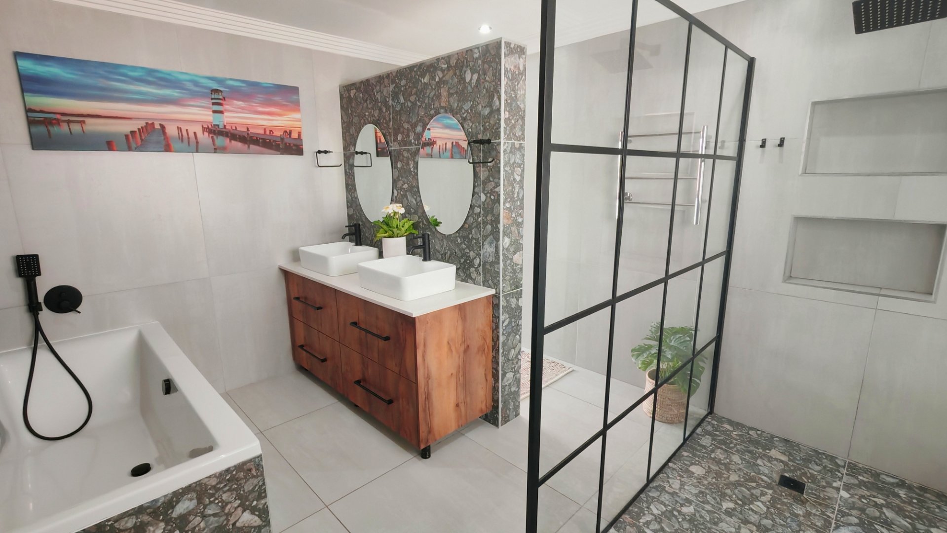 Always wanted to live close to a river, and feel as if every day is a holiday, then this beautiful 3-bedroom duplex could be yours. Utilize it as your permanent home or your holiday home. This stunning double storey property with quality finishes is located in the prestigious Oewerstroom, known for its relaxed lifestyle, breathtaking surroundings and river views. Oewerstroom is situated close to popular Hartenbos. The stylish home features three bedrooms and two bathrooms on the upper level, providing ample space for comfortable living. The master suite can fit a king size bed easily and offers a full en-suite bathroom and awe-inspiring views. The ground level open-plan living area boasts a seamless flow, with the well-appointed eye-catching kitchen, seamlessly connecting to the dining and lounge areas with a built-in braai and guest toilet. It has a braai room with built in braai to enjoy your morning coffee. The tiled single garage with its extraordinary door has direct access to the house and to the separate laundry. At the back is a toolshed and an outside braai area.