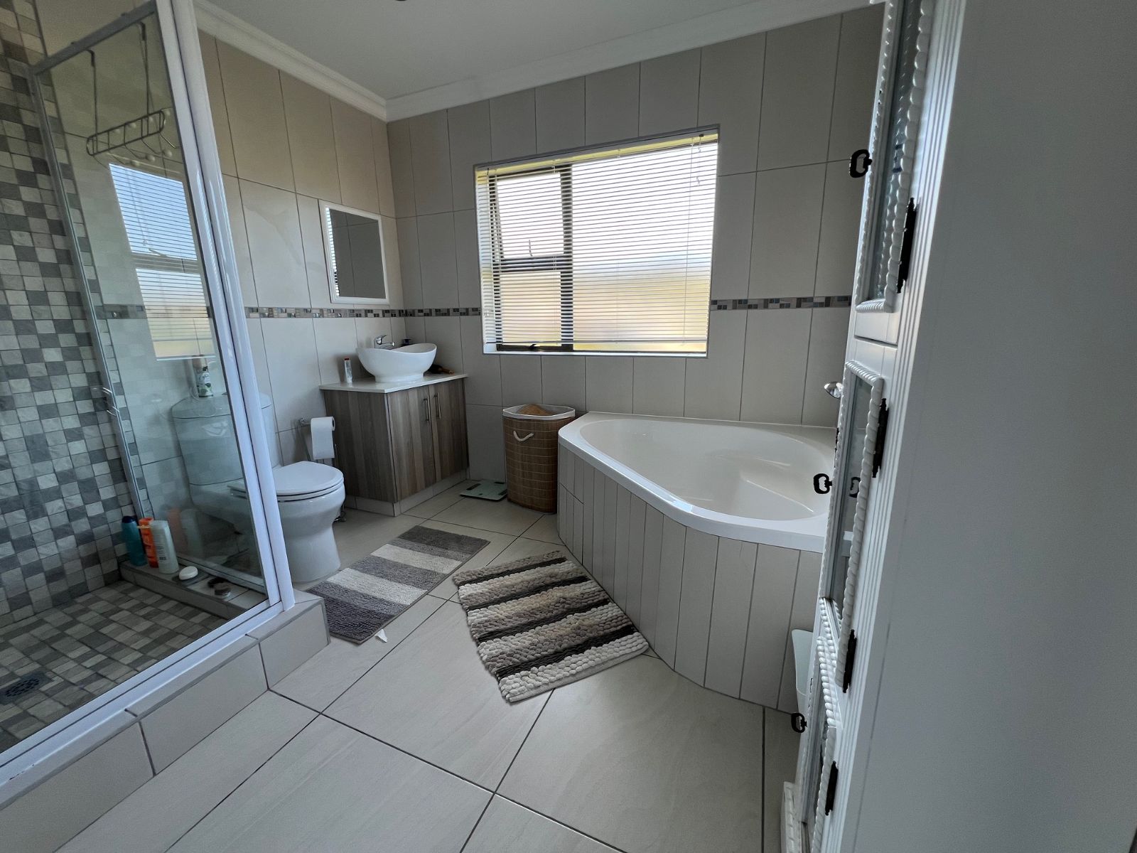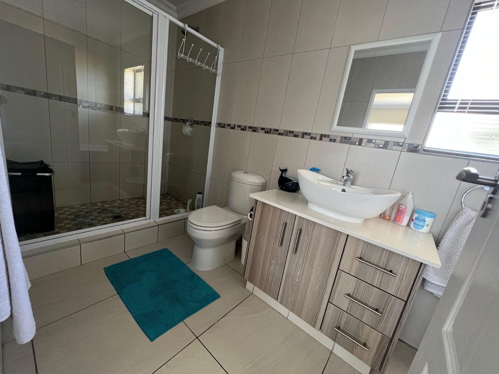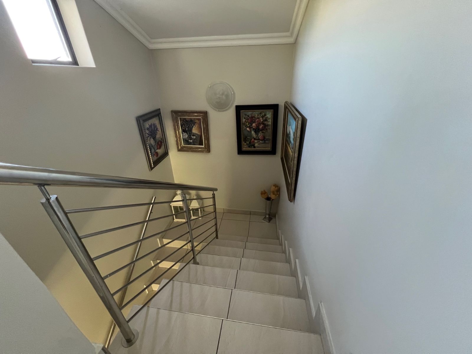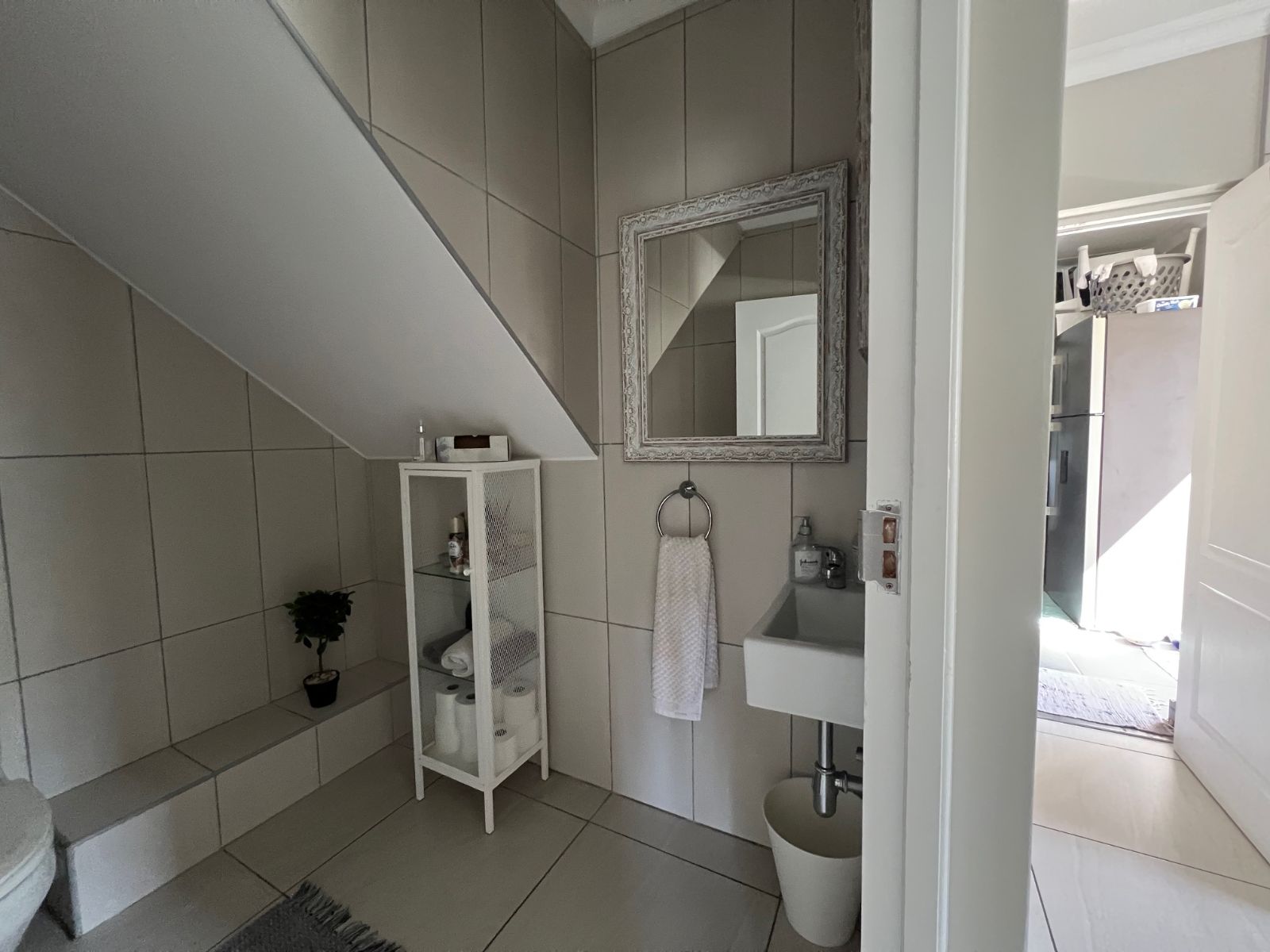 This home is designed for convenience and efficiency, boasting a 5kVA inverter and battery backup system and a gas geyser to ensure you're never affected by power outages. The layout is thoughtfully designed with one bedroom and a full en-suite on the ground floor, offering privacy and easy access. Upstairs, you'll find two additional bedrooms, each with its own en-suite bathroom, including a magnificent main bedroom with a private patio for those moments of quiet relaxation.