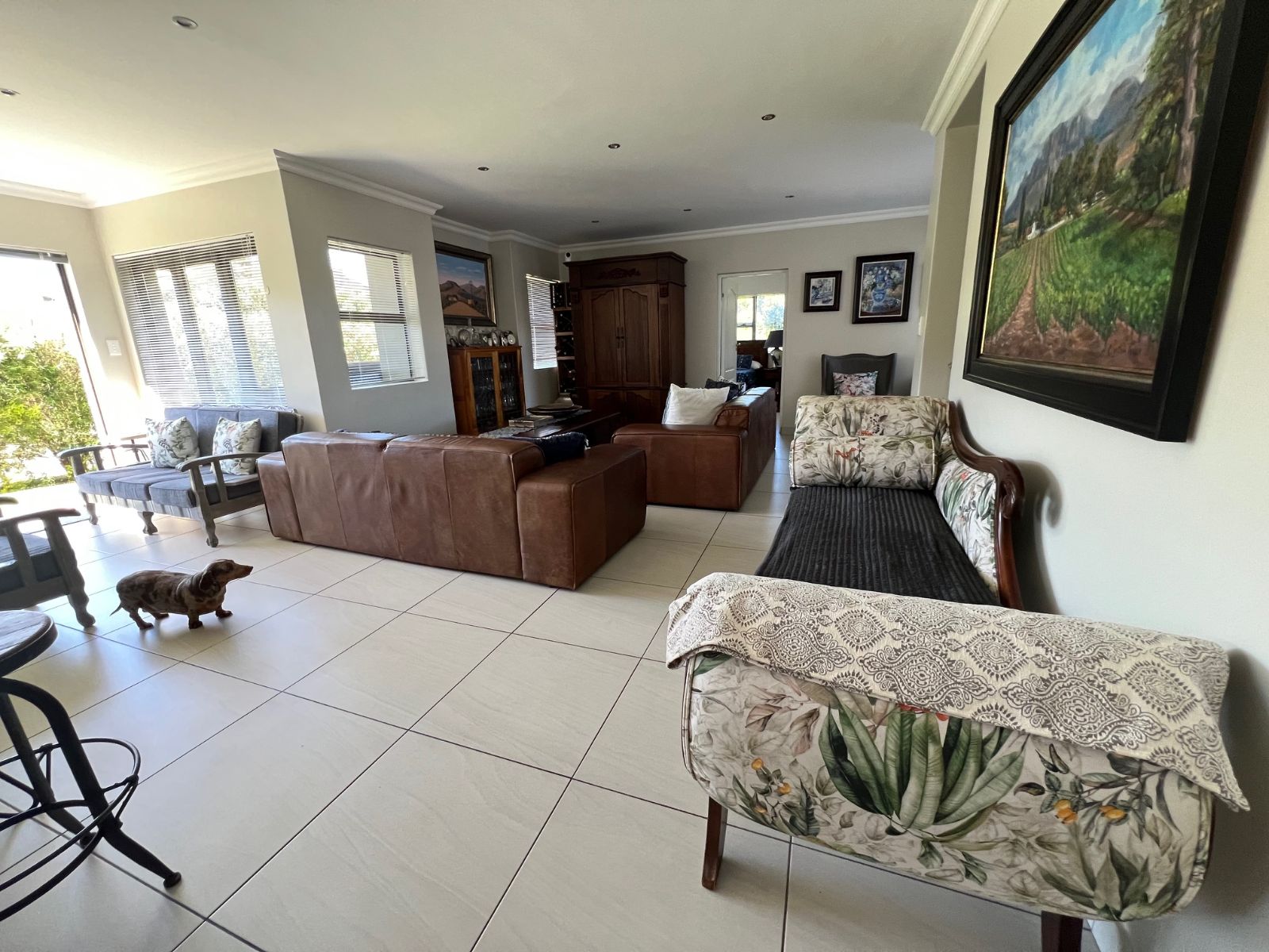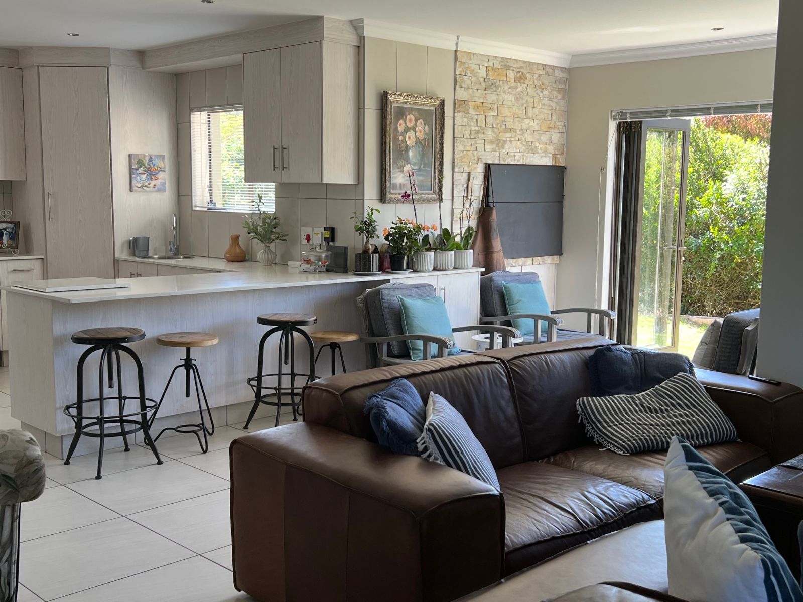 From the moment you arrive, you'll be captivated by the home's open and airy feel. The open-plan living and dining areas flow seamlessly, creating an inviting space for family and friends. For those who love to entertain, the adjacent braai room with its stunning stacking doors opens onto a covered patio, where you can enjoy tranquil sundowners overlooking your private, low-maintenance garden.