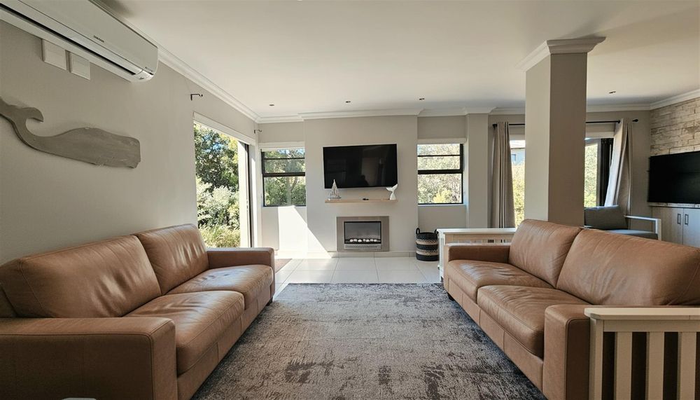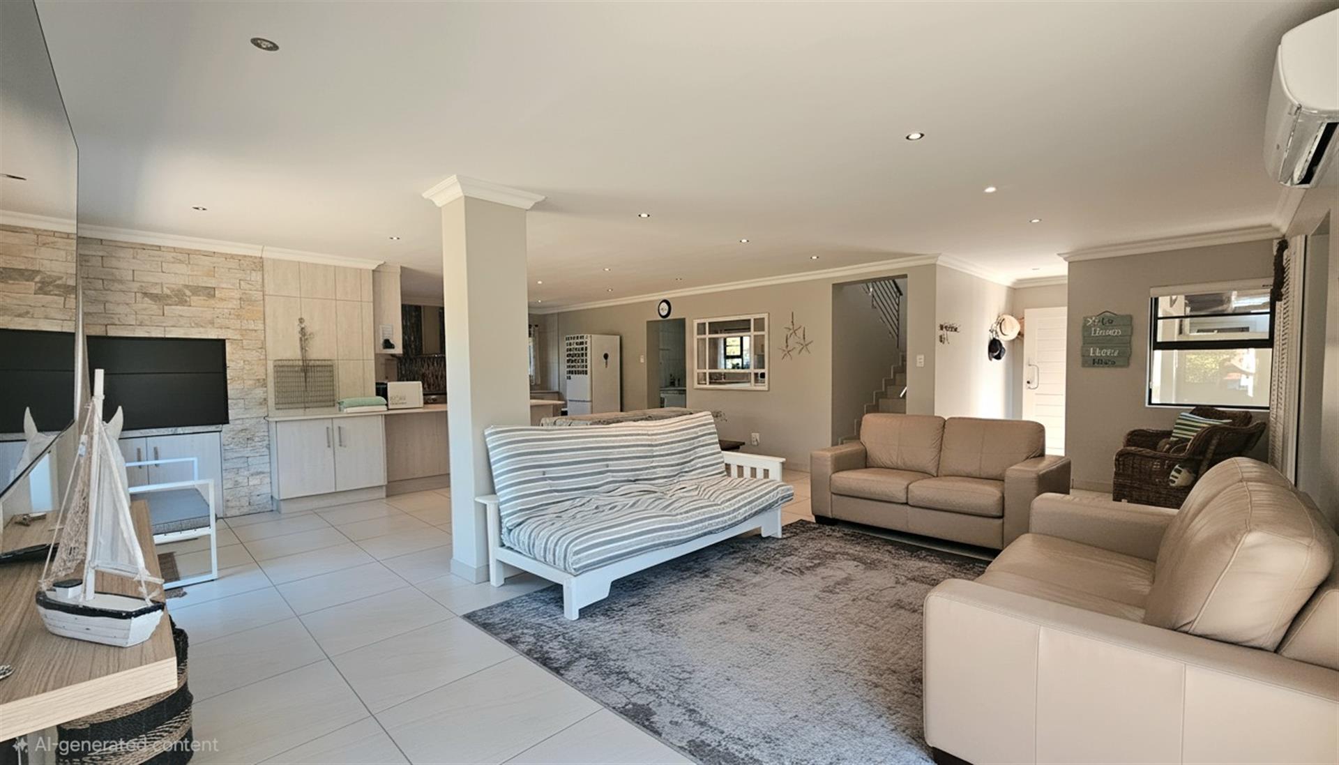 Discover elevated estate living in this beautifully maintained 4-bedroom, 4.5-bathroom dual-level townhouse perfectly positioned on a corner stand within the renowned Hartenbos Landgoed Eco Estate. Surrounded by pristine coastal fynbos and bordering both the Hartenbos lagoon and beachfront, this home offers the ideal blend of privacy, security, and natural beauty.