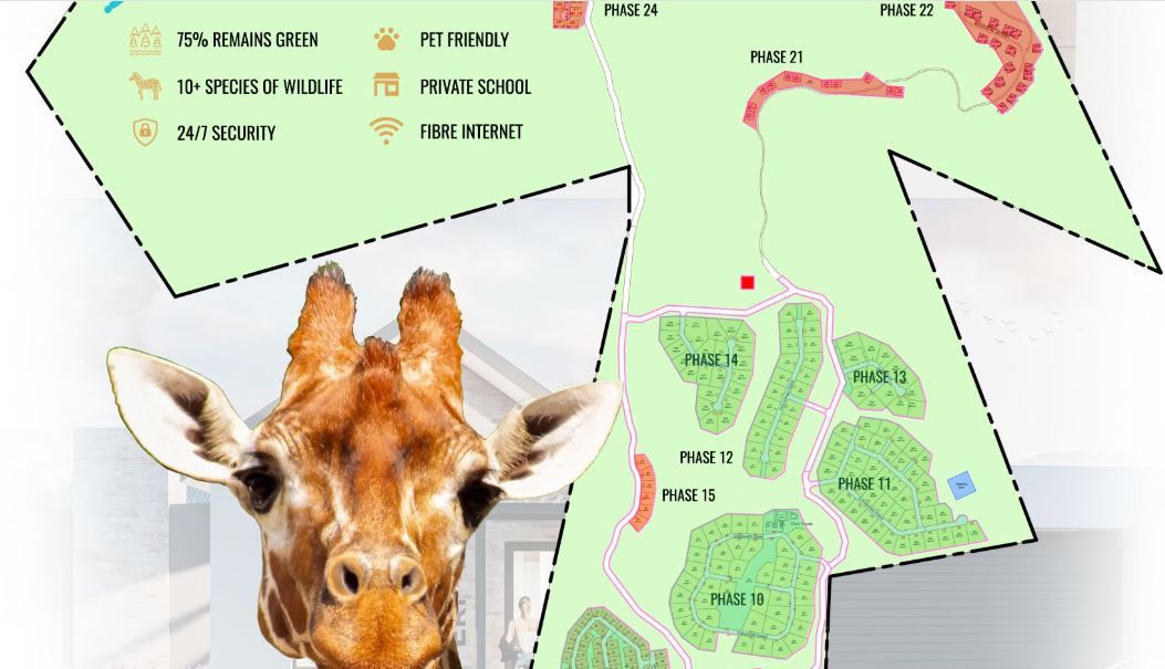 Wake up to panoramic views of the Outeniqua Mountains and roaming wildlife on your doorstep. The estate spans over 525 hectares, of which 75% remains natural fynbos and open space, allowing free movement for over 10 species of game including zebra, giraffe, kudu and more. No fences between homes and wildlife — just open skies and endless natural beauty.