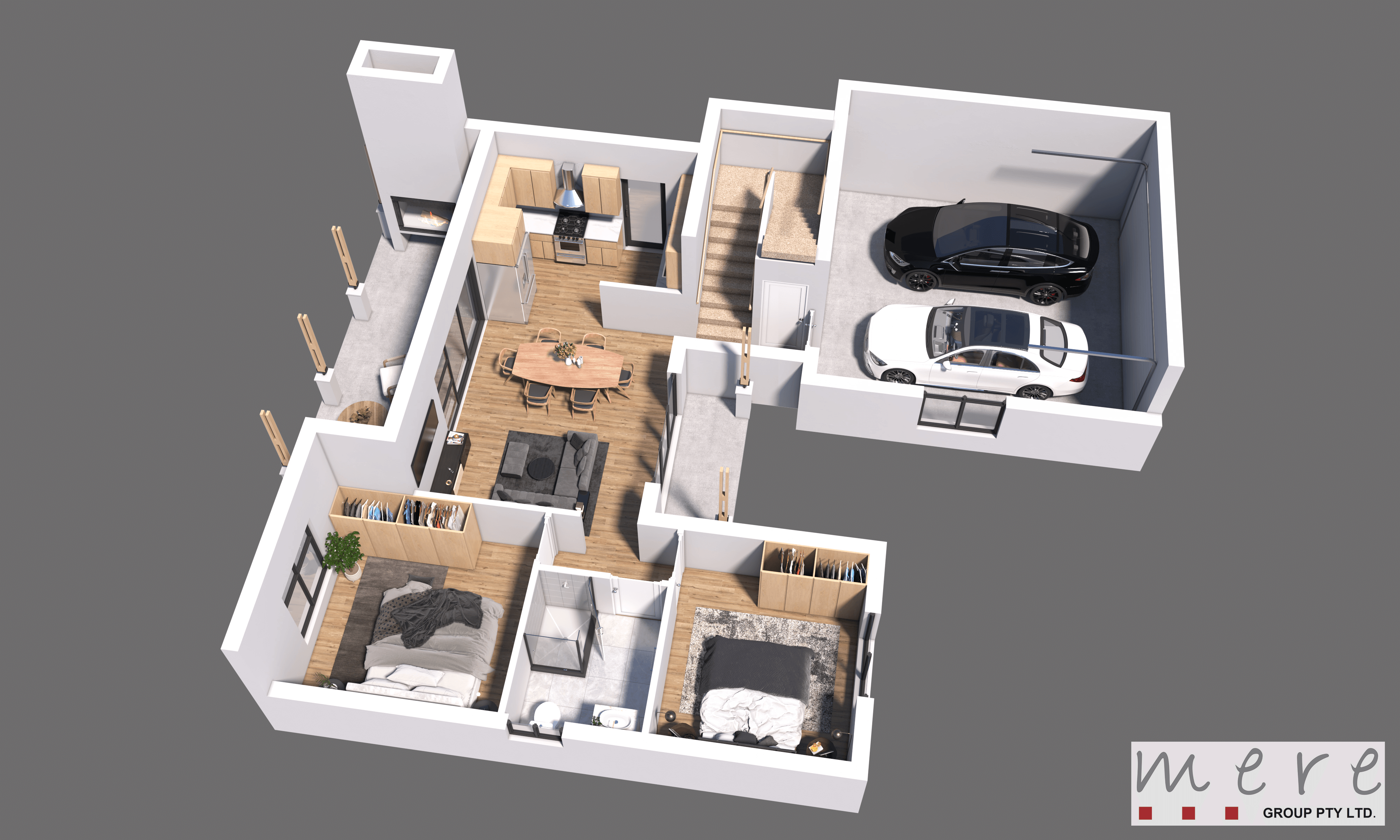 The first floor contains the main bedroom and en-suite bathroom, for extra privacy,