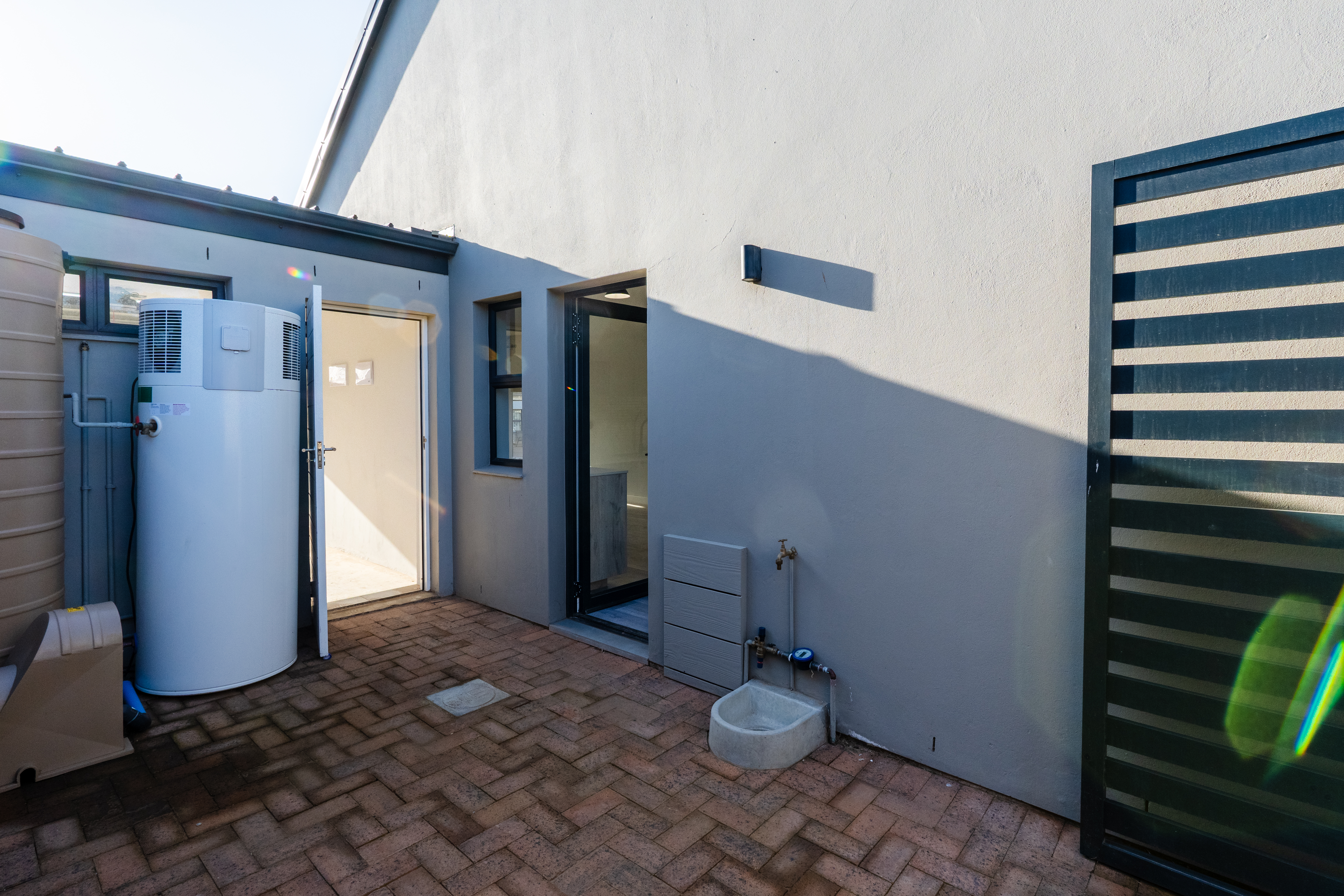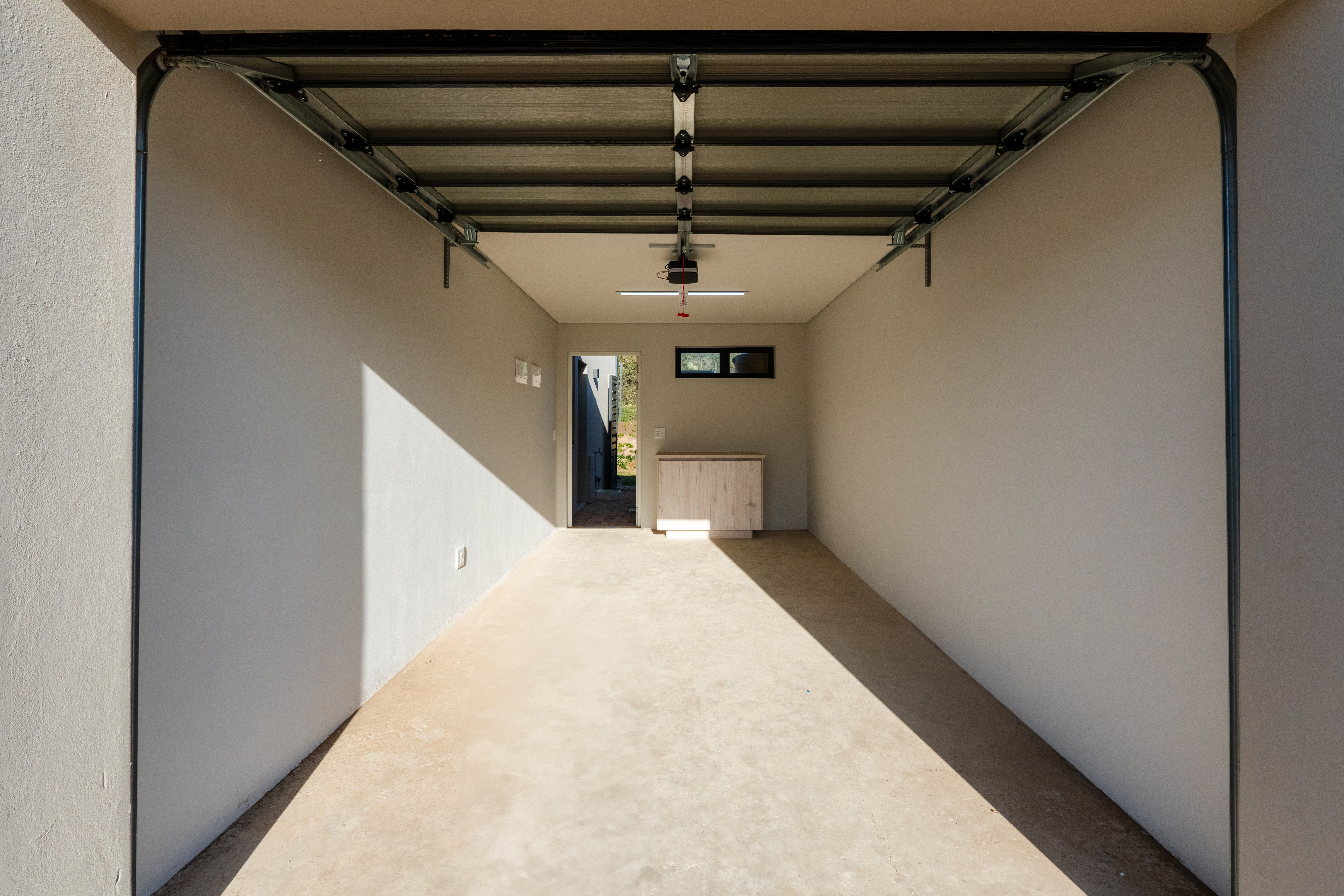 An automated single garage provides secure and convenient access with direct entry into the home.