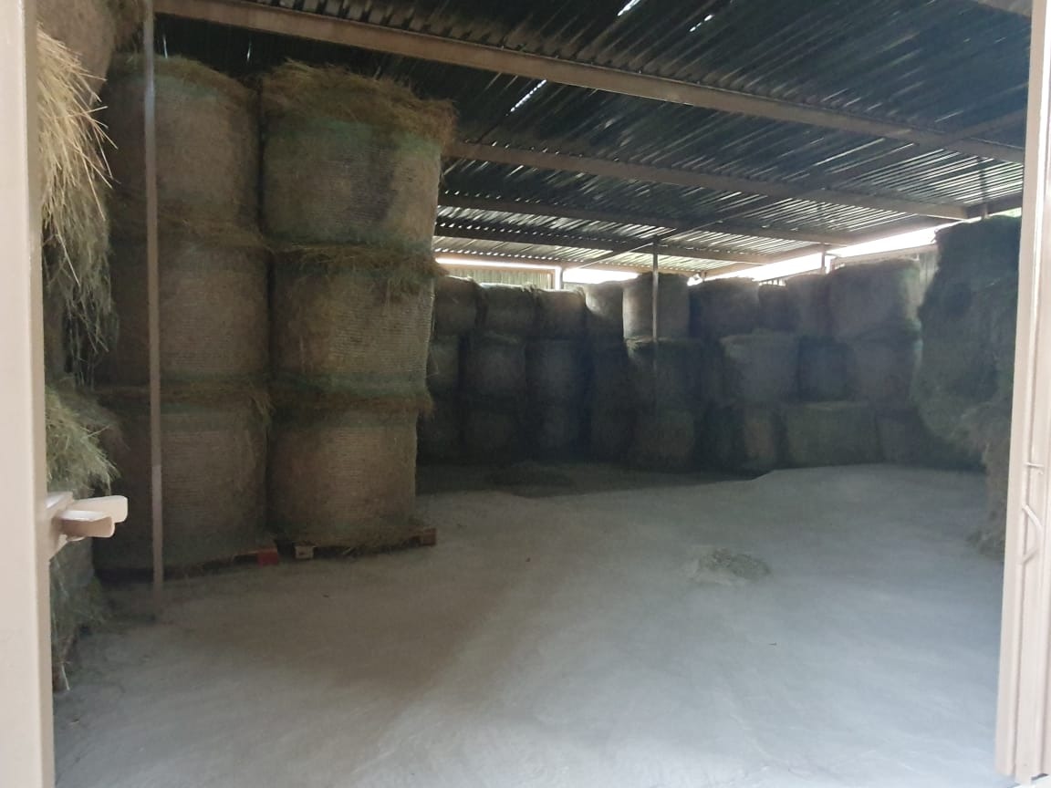 Feed storage for up to 60 large round bales, horse wash bay, and mini horse-hospital paddock