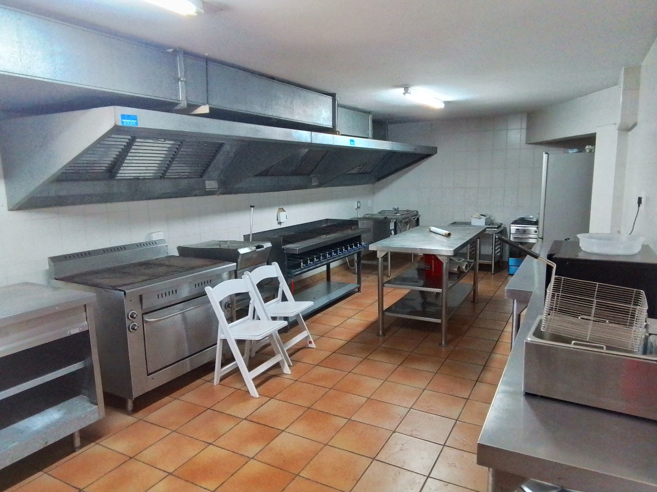 There are two commercial kitchens. The primary kitchen is equipped with a walk-in fridge, cold room, stoves, and a staff bathroom, while the secondary kitchen is fully functional with stoves and refrigeration. A dedicated delivery access point serves both.