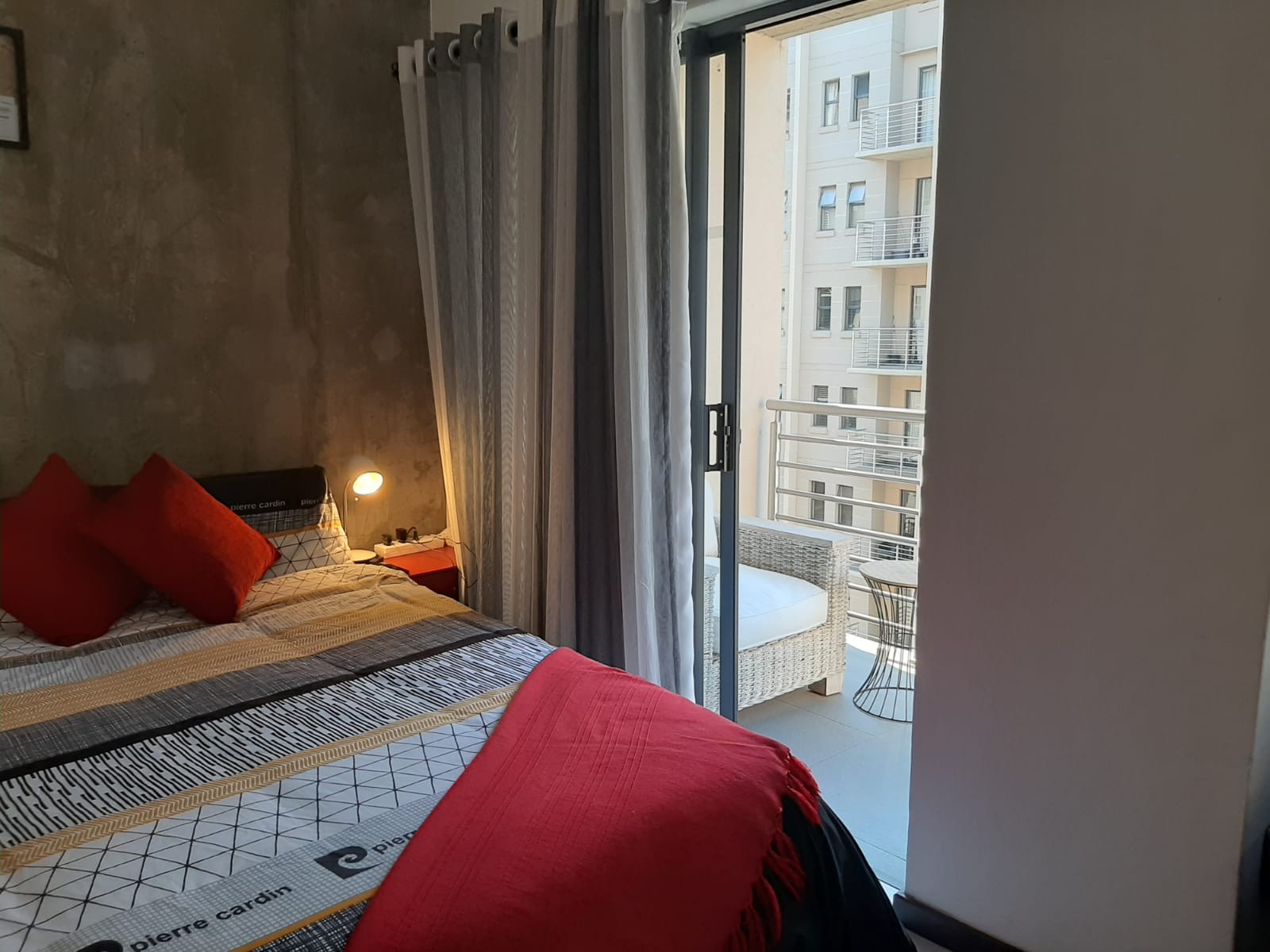 The apartment features an open-plan kitchen and living area, a well-appointed bathroom, and a private balcony. The complex offers 24/7 security, ensuring peace of mind and secure living.