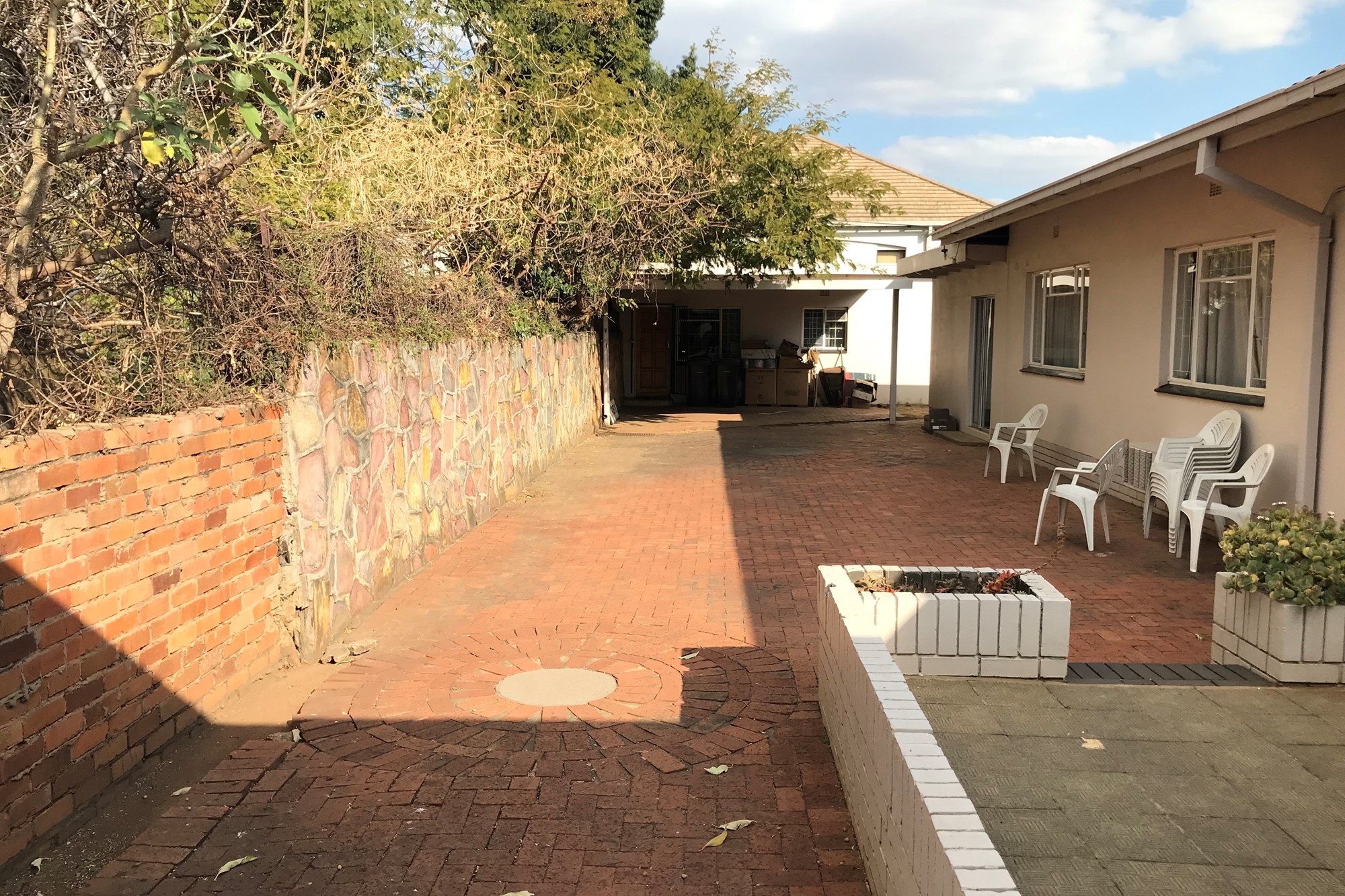 It is fully walled with controlled access from the street.