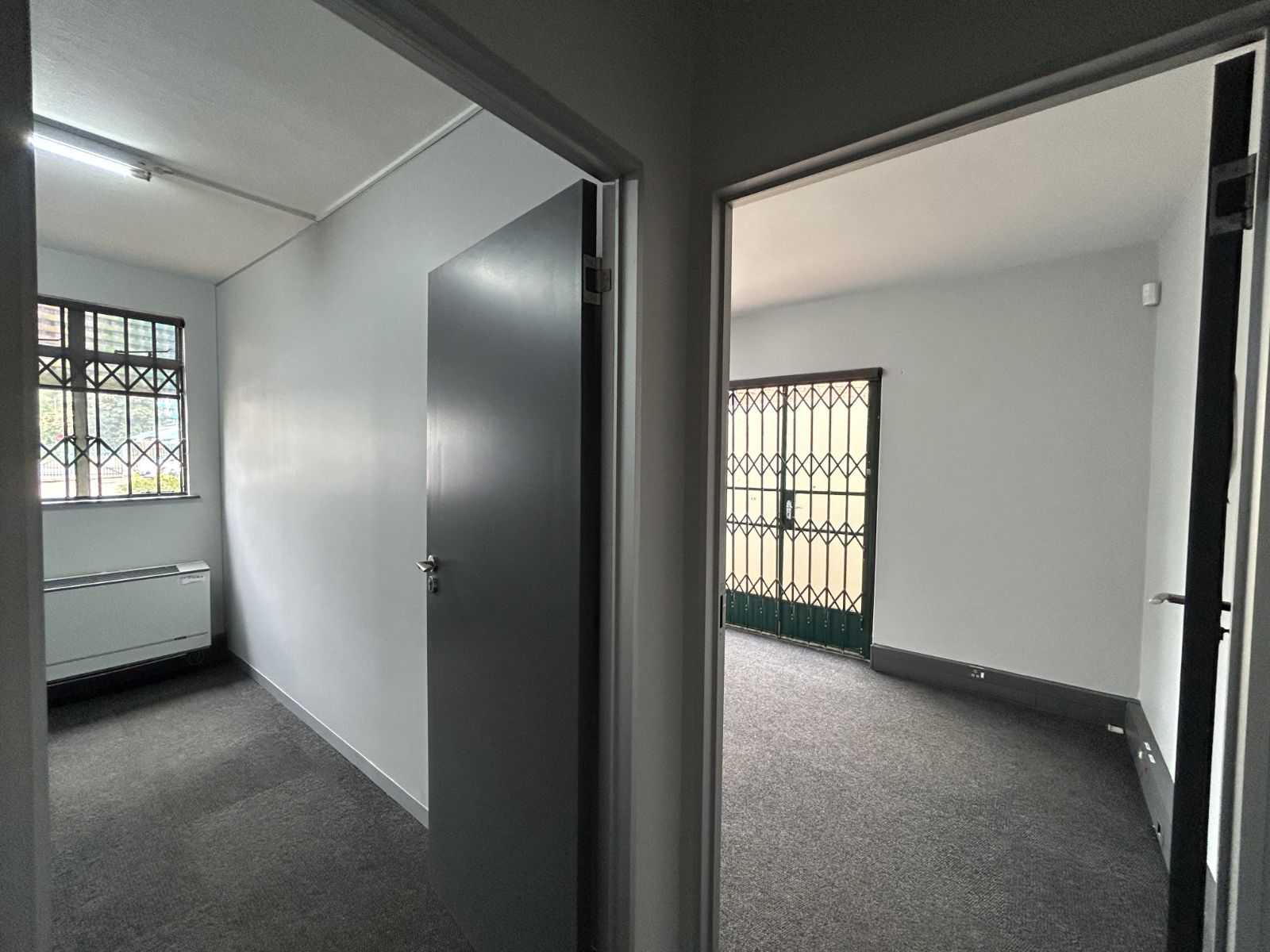Upon entry, you are welcomed by a reception area leading to a spacious boardroom, private offices, a fully equipped kitchen, and open-plan workspaces that encourage collaboration and productivity. The upper level provides additional open-plan areas, ablution facilities, and access to a balcony – perfect for staff breaks or informal meetings.