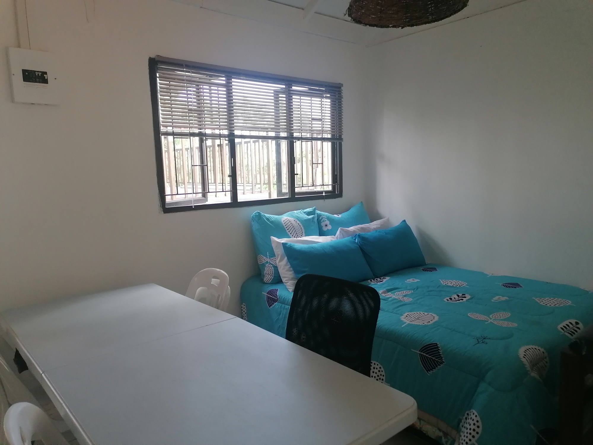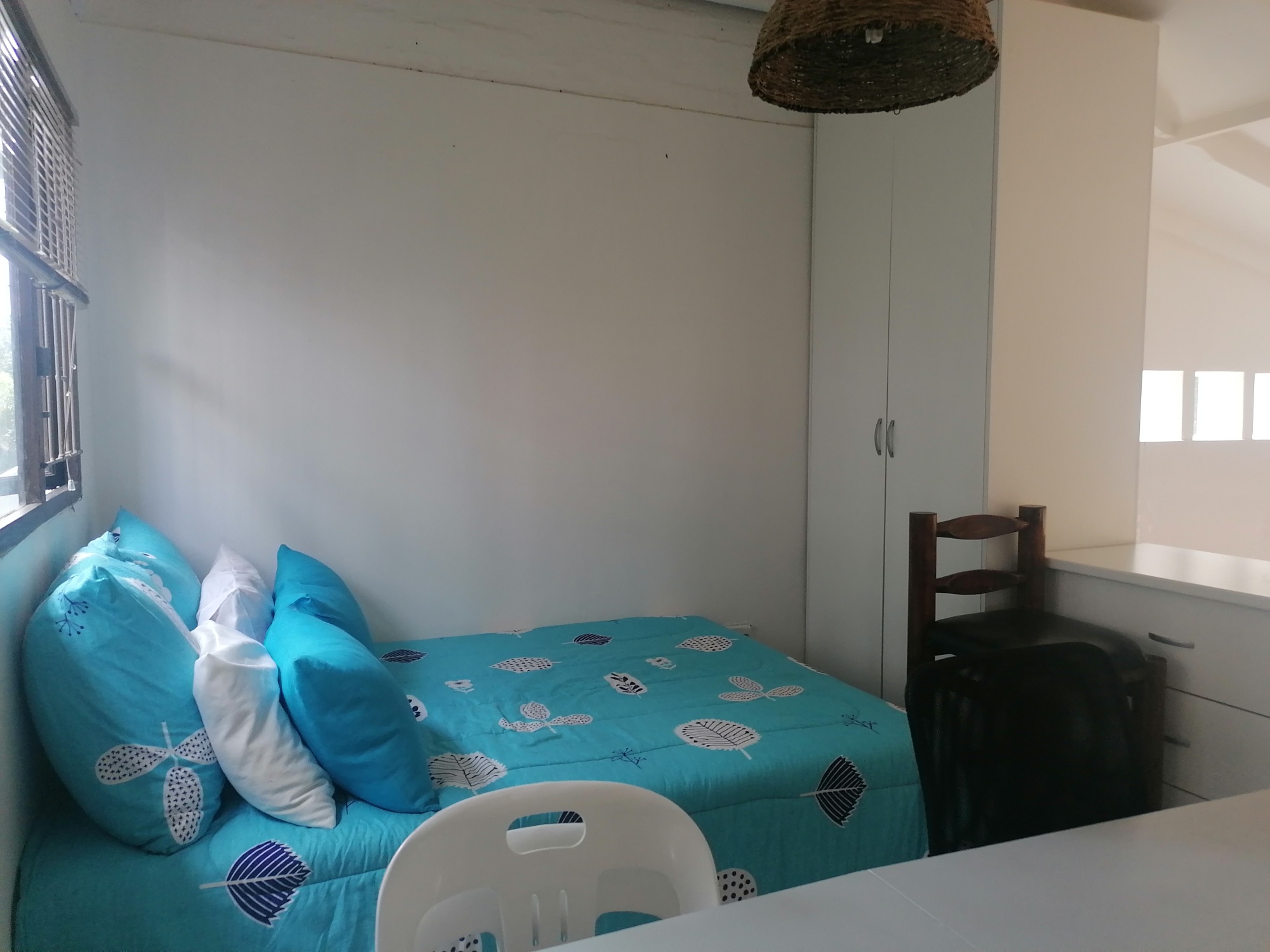 The bedroom fits a double bed