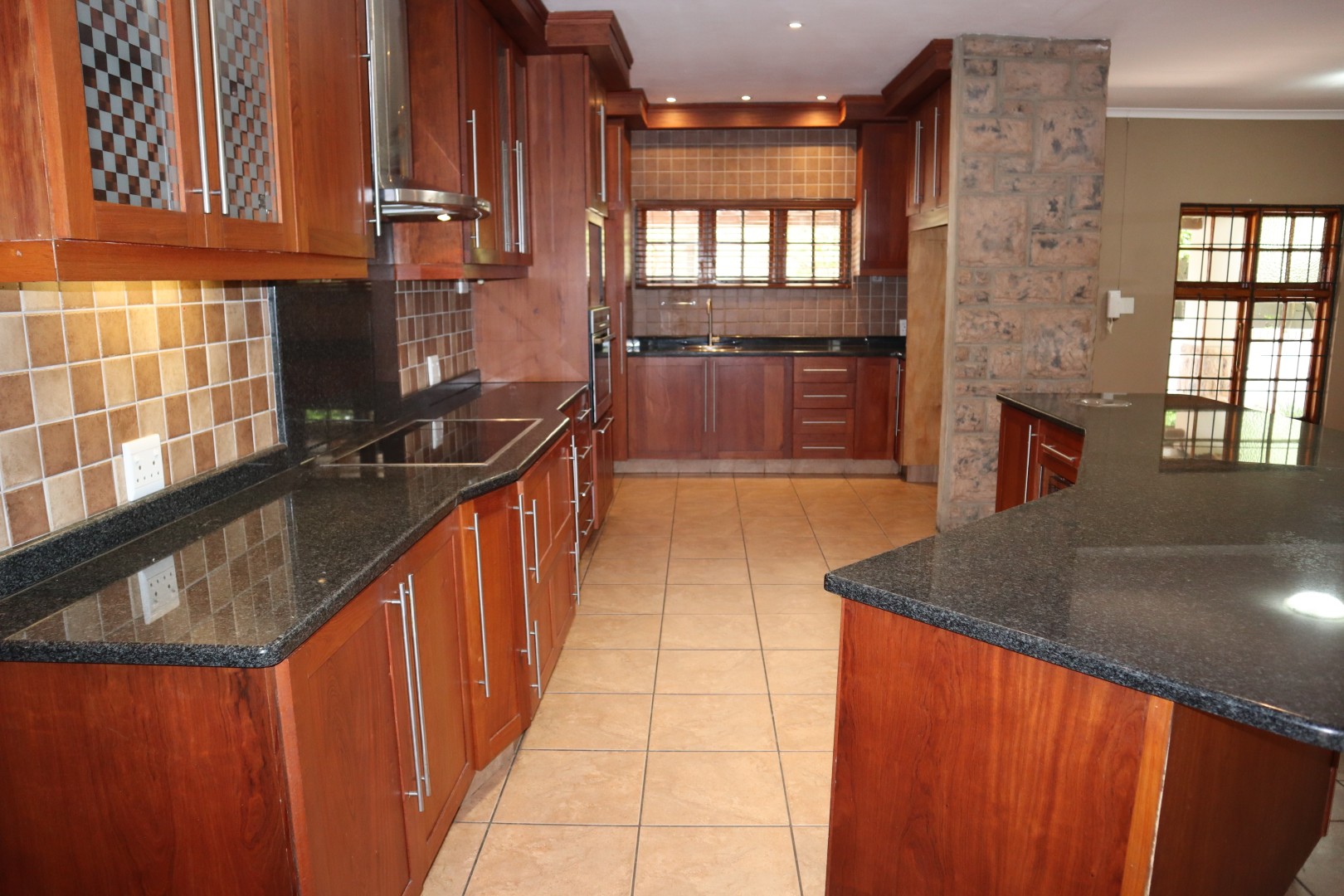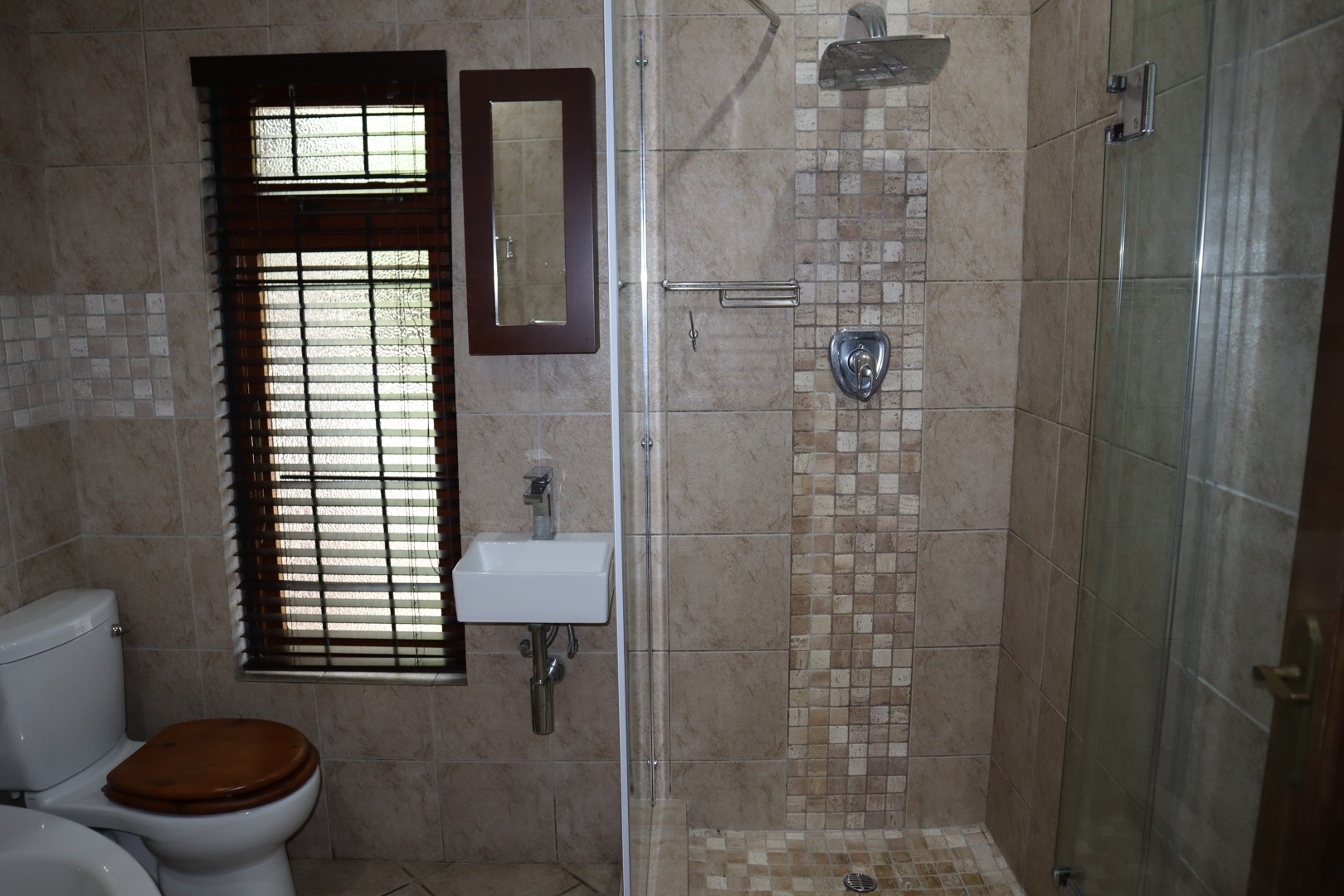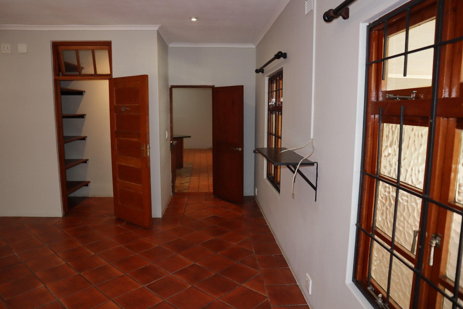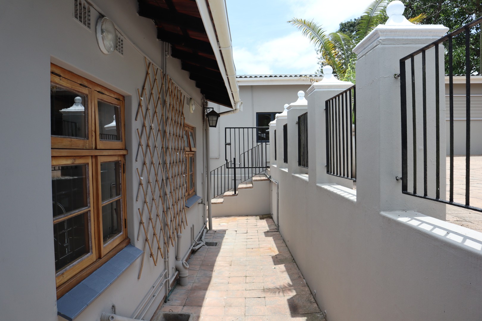 4 Bedrooms with built in cupboards and ceiling fans, the family bathroom has a corner bath, toilet basin, and shower plus a separate guest toilet. The en-suite bathroom has a bath, toilet basin, and double showers.