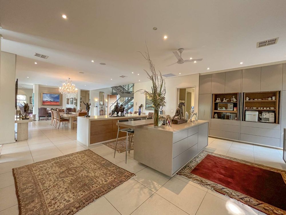 Discover the epitome of luxurious living with this exquisite 5-bedroom residence, masterfully designed by renowned architect Stephan Antoni. Spanning an impressive 960 square meters, this home boasts an open-plan layout that exudes spaciousness and grandeur. Seamless glass stack-back doors blur the lines between indoor and outdoor living, leading to a sparkling pool ideal for both relaxation and entertaining.
