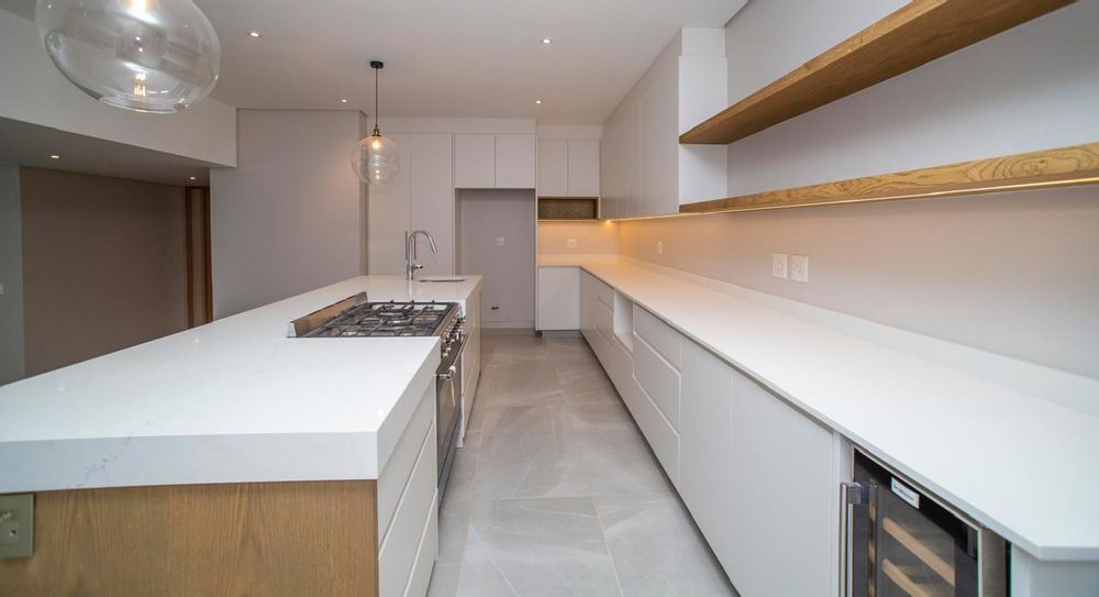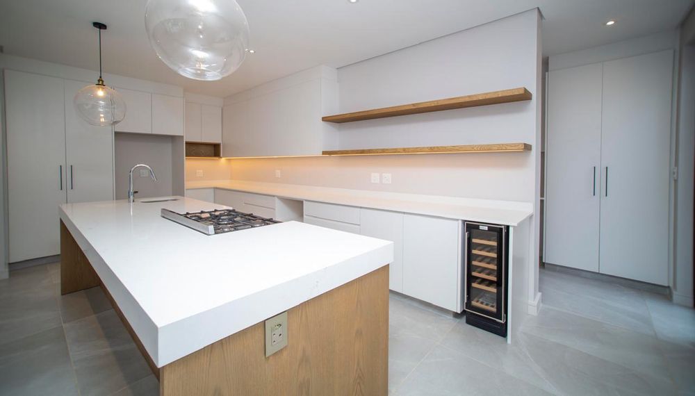 The kitchen is designed for convenience and style, with high-end appliances and ample storage space.