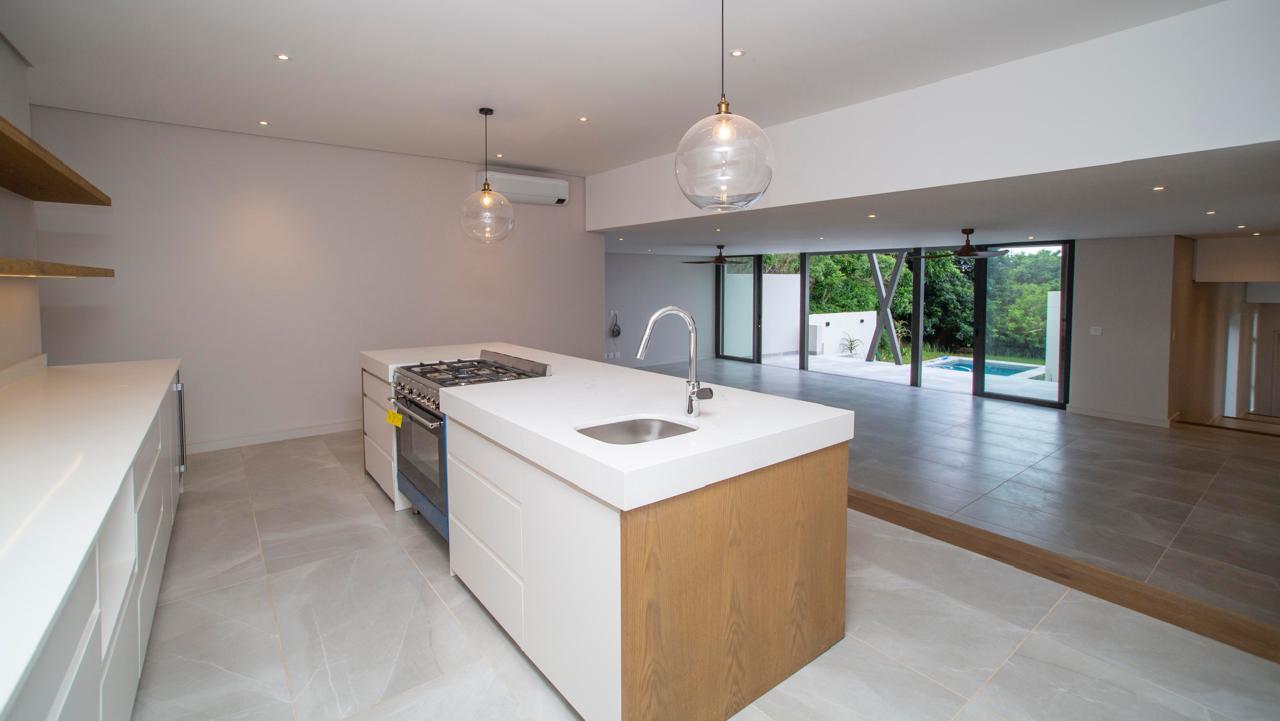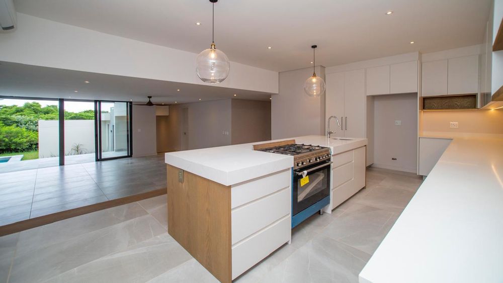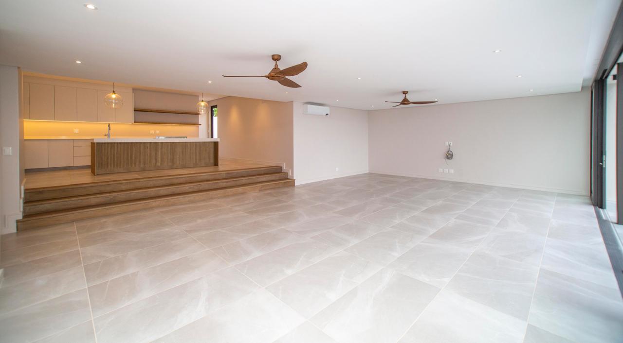 The house boasts an open-plan design, seamlessly integrating living, dining, and kitchen spaces, ideal for both relaxation and entertaining.