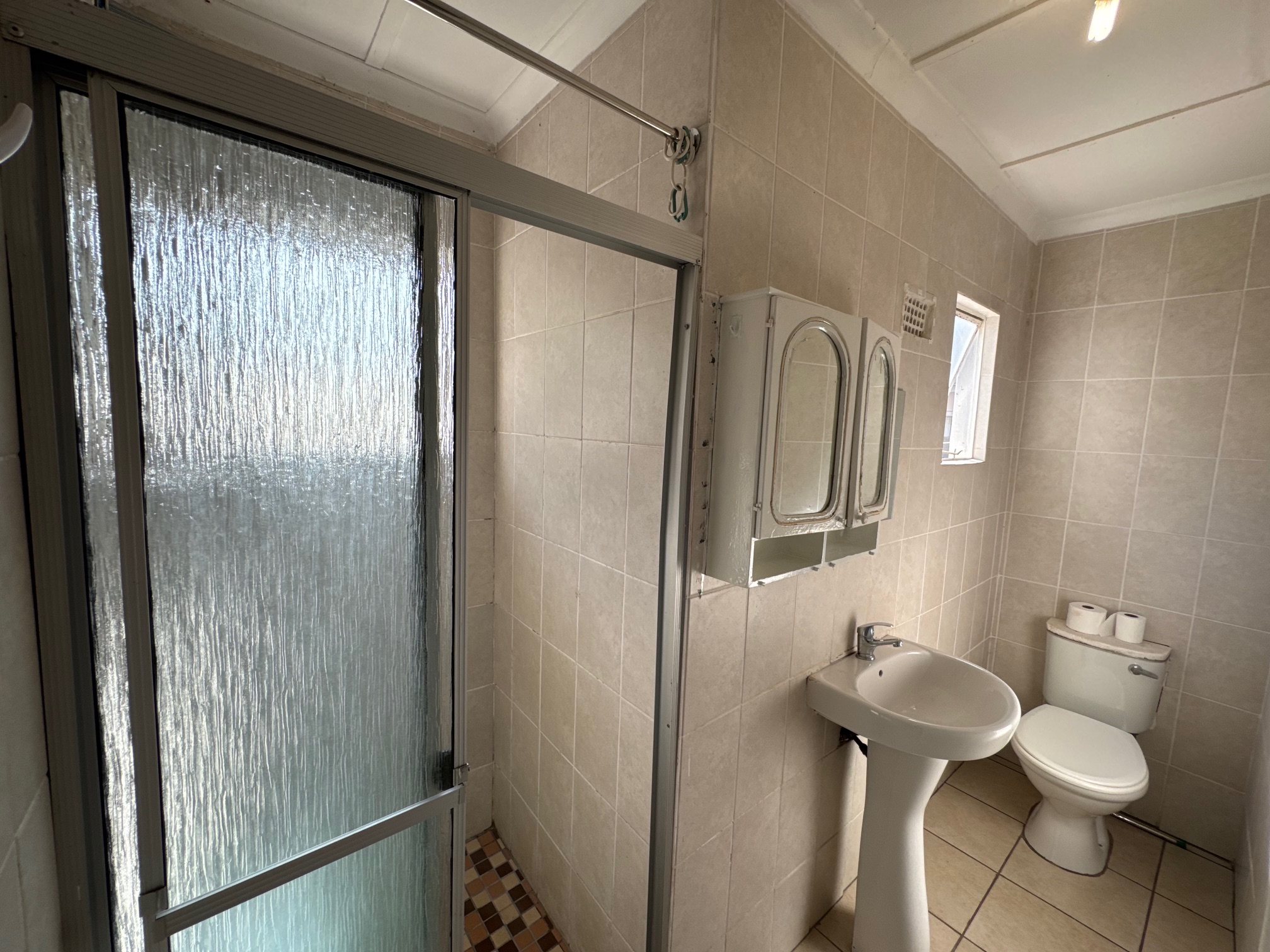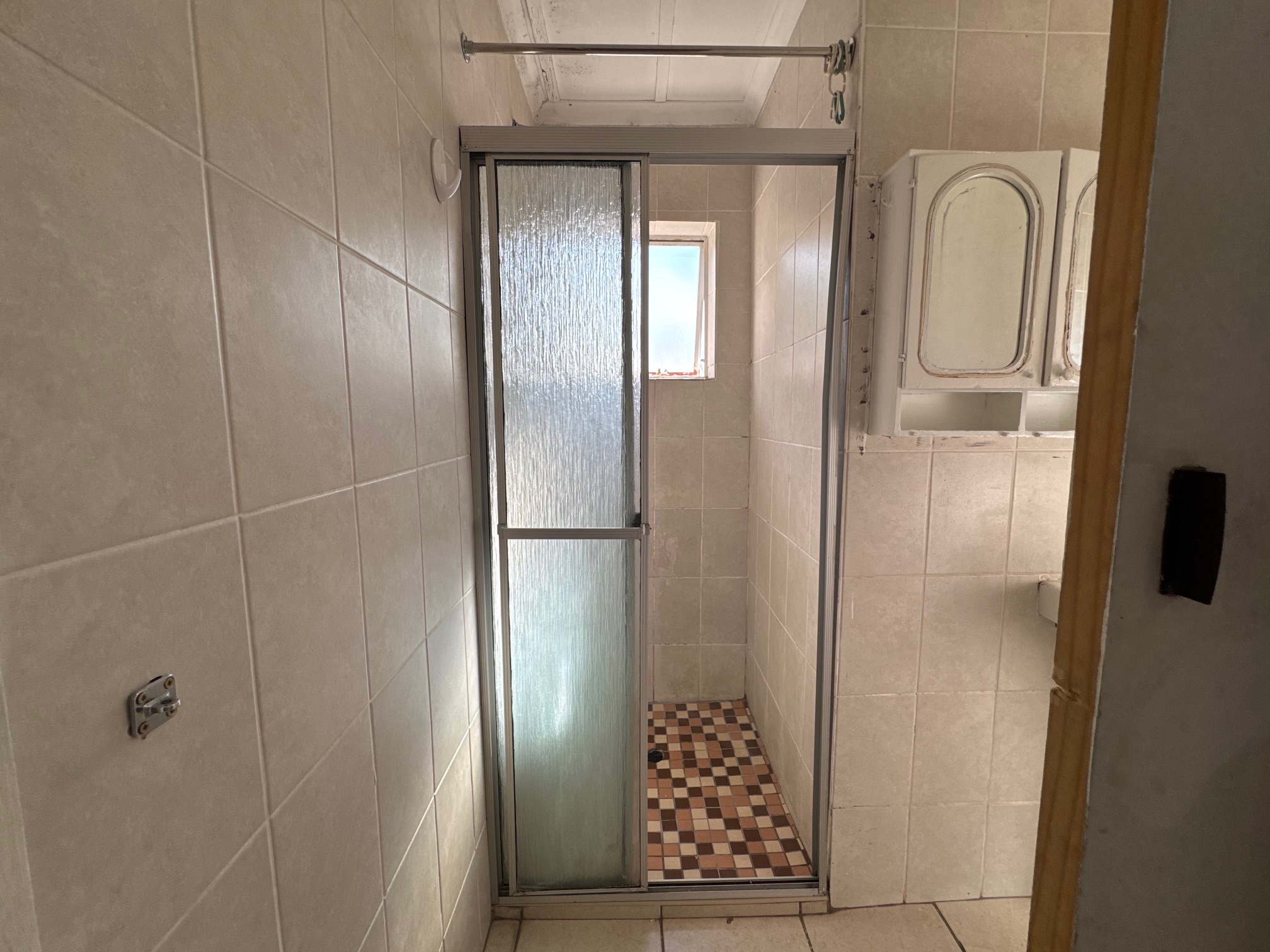 The unit includes a separate bathroom fitted with a shower, basin, and toilet.