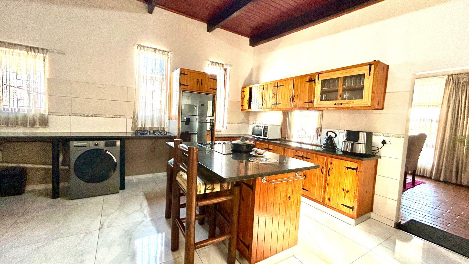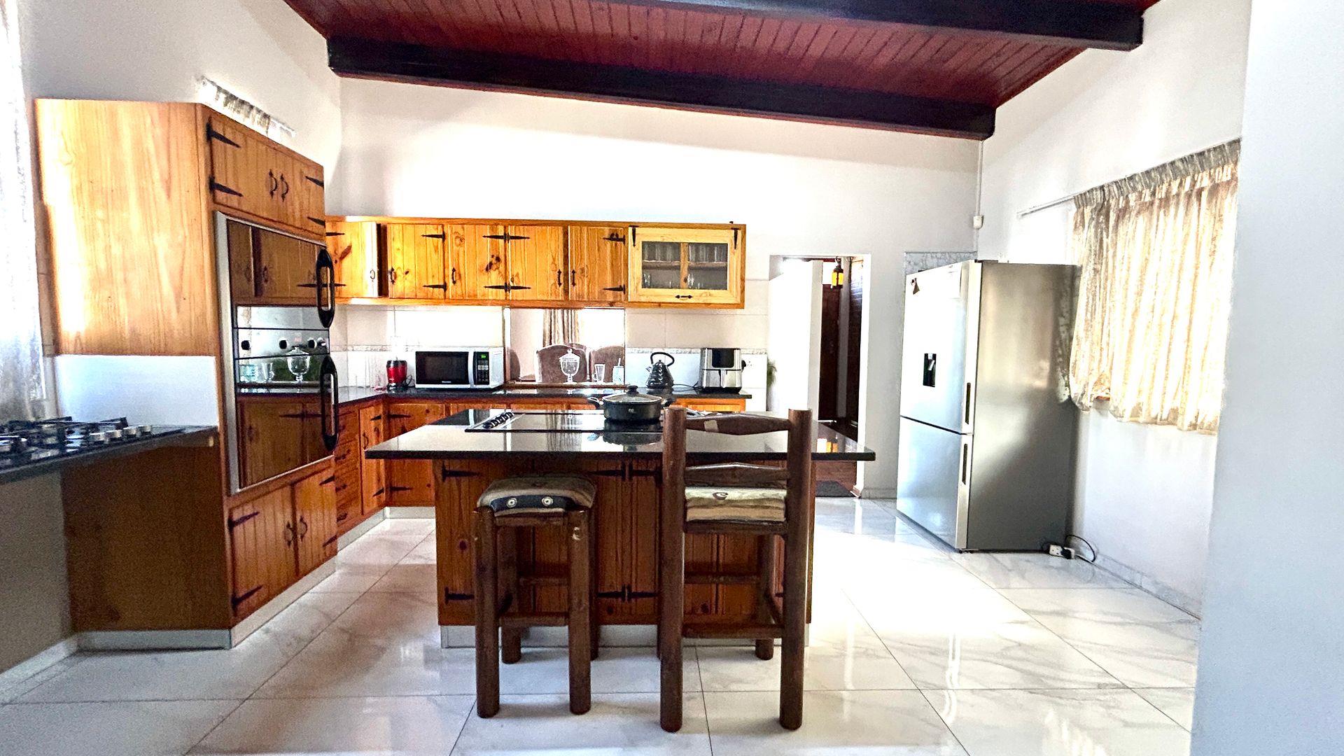 The kitchen is the heartbeat of the house — a generous, light-filled space with granite counters, double ovens, and both gas and electric hobs so supper never misses a beat during load-shedding. Gather round the island while dinner sizzles and conversation sparkles.