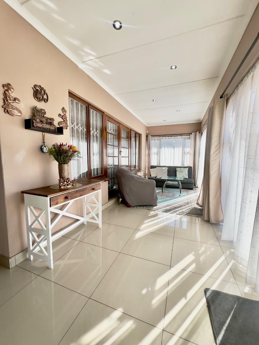 This beautifully versatile family home is tucked away in a quiet and peaceful cul-de-sac in sought-after Hayfields, a corner plot , perfectly positioned on a generous 942m2 corner plot with a larger-than-usual servitude that creates an incredible sense of space and privacy. From the moment you arrive, the fully paved driveway, motorised gate and intercom system, and solid precast perimeter walls set the tone for secure, low-maintenance living. Parking will never be an issue, with a tiled, automated triple garage and space for an additional five vehicles, making it ideal for large families, visiting guests, or those who simply love to entertain.