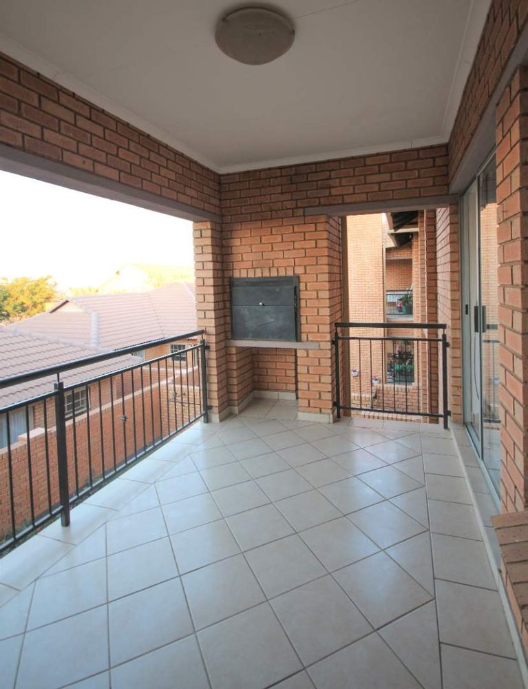 This modern 2 bedroom, 2 bathroom unit features an open-plan kitchen, dining, and living area leading to a covered balcony with a built-in braai.