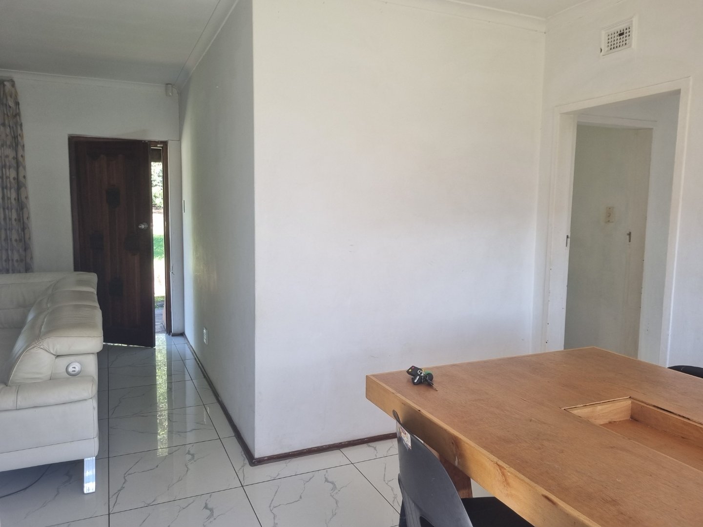 Set on a generous 1176sqm flat plot, this property features 3 well-sized bedrooms with built-in wardrobes and 2 bathrooms, one being an ensuite in the main bedroom. The home is neatly tiled throughout, creating a clean and low-maintenance living space.