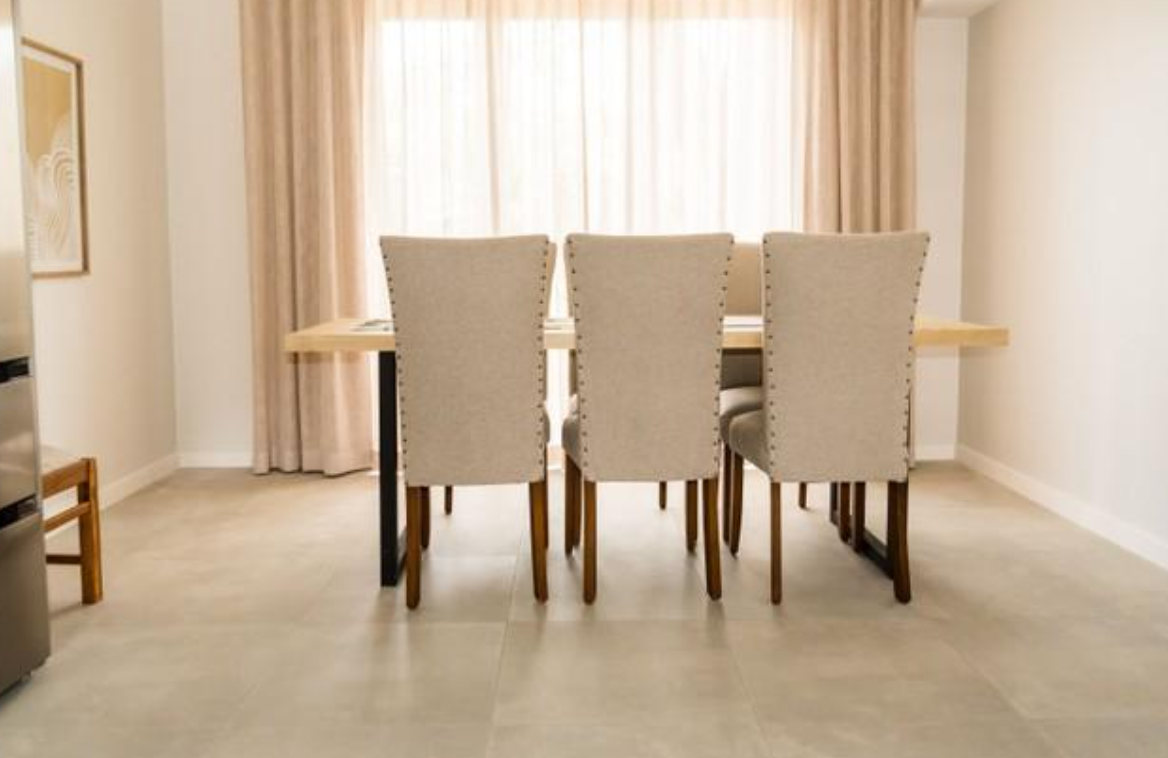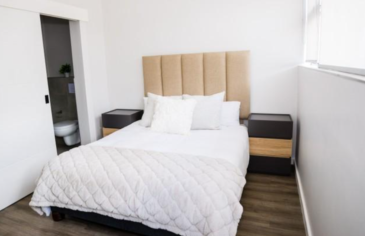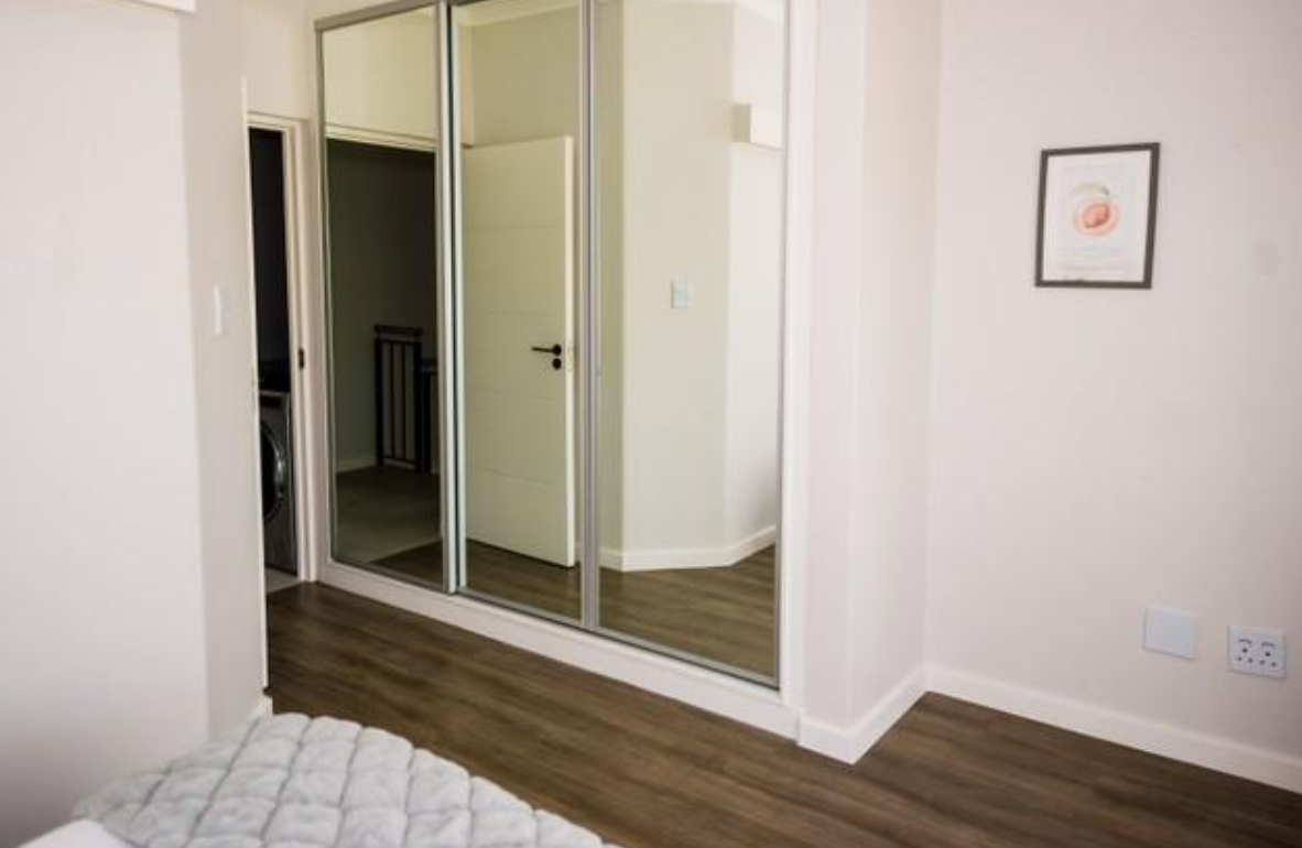 Bedrooms has high volume ceilings and vinyl flooring with en-suite bathroom and built-in cupboards with sliding mirror doors.