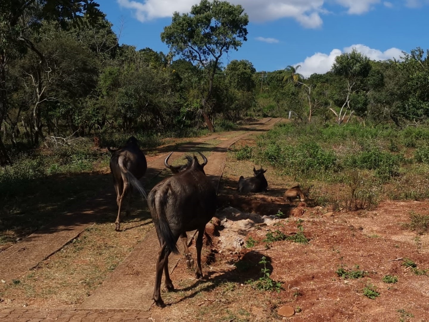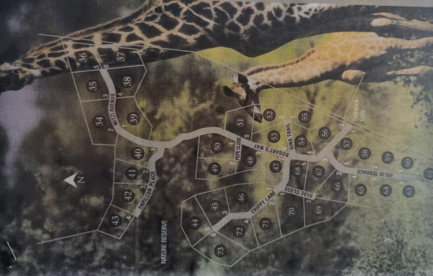 • 435 Hectare estate is fully stocked with game such as Giraffe, Zebra, Impala, Bushbuck, Grey Duiker, Red Duiker, and Kudu. Although the BIG 5 does not feature it is completely safe to walk, and cycle around the estate, to do some Bass fishing in the dam, and to enjoy living on an unfenced site with your home open to the bush.