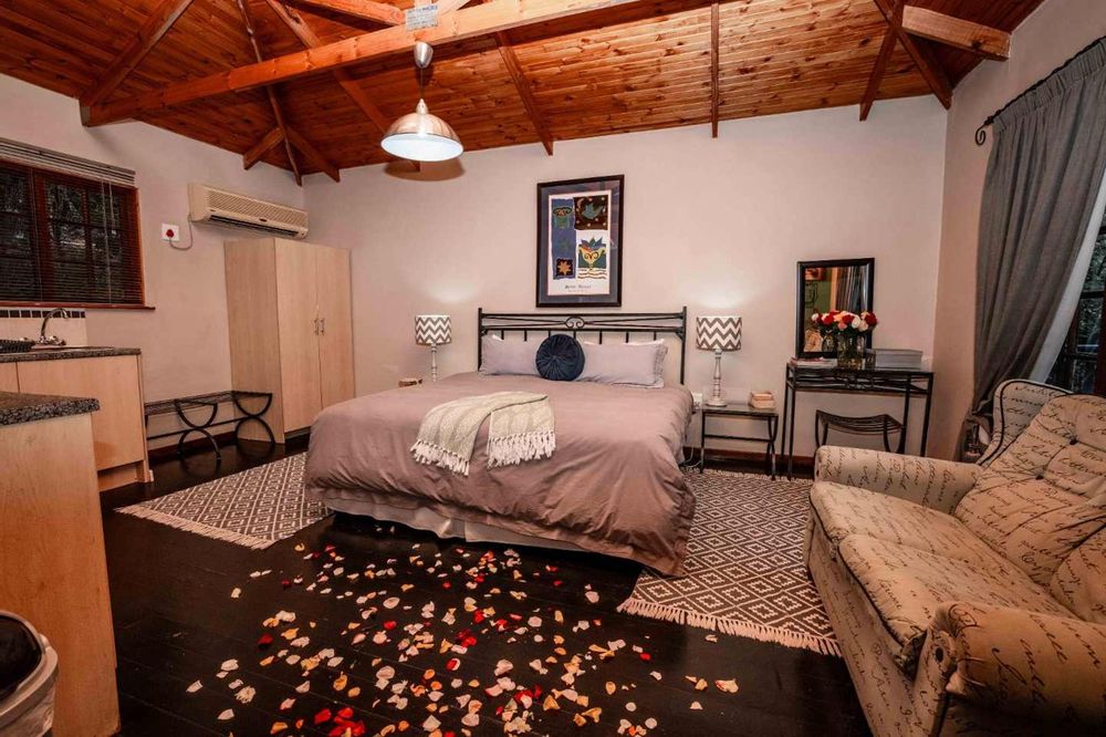 Guest accommodation includes 6 air-conditioned log cottages, each sleeping 2 guests. The cottages are well spaced in indigenous bush for privacy. Each unit offers a heated 4-seater spa-bath on a covered patio, en-suite bathroom with shower, kitchenette with fridge, microwave, 2-plate stove, and tea/coffee facilities. All cottages also have private braai areas, Wi-Fi, and mini-bars. A communal swimming pool is available for guest use.