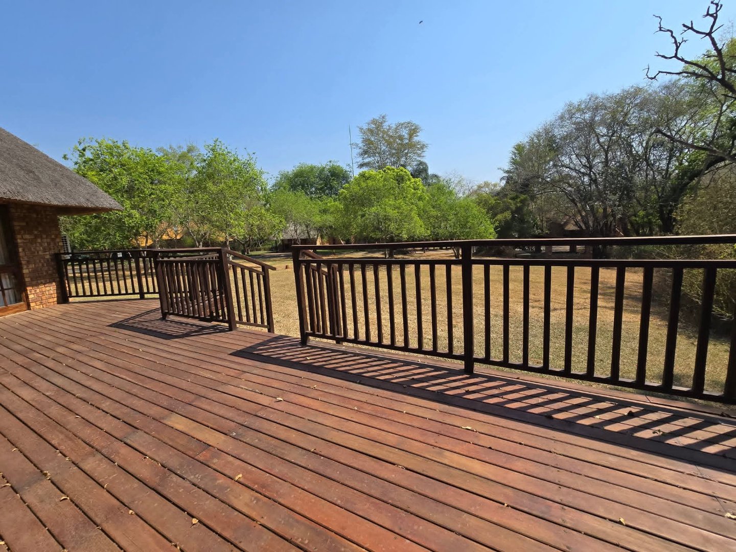 Experience the ultimate getaway at this luxurious property, and a secure location near Kruger National Park. The fully furnished unit includes 3 bedrooms, all en-suite, main lounge with a fireplace, a chef's kitchen with a small laundry facility room, a large patio with fitted jet braai and a spacious deck. The property offers a double carport, has a thatch roof, high-standard safety and security as well as well-maintained grounds. Cleaning Services rendered at extra charge.