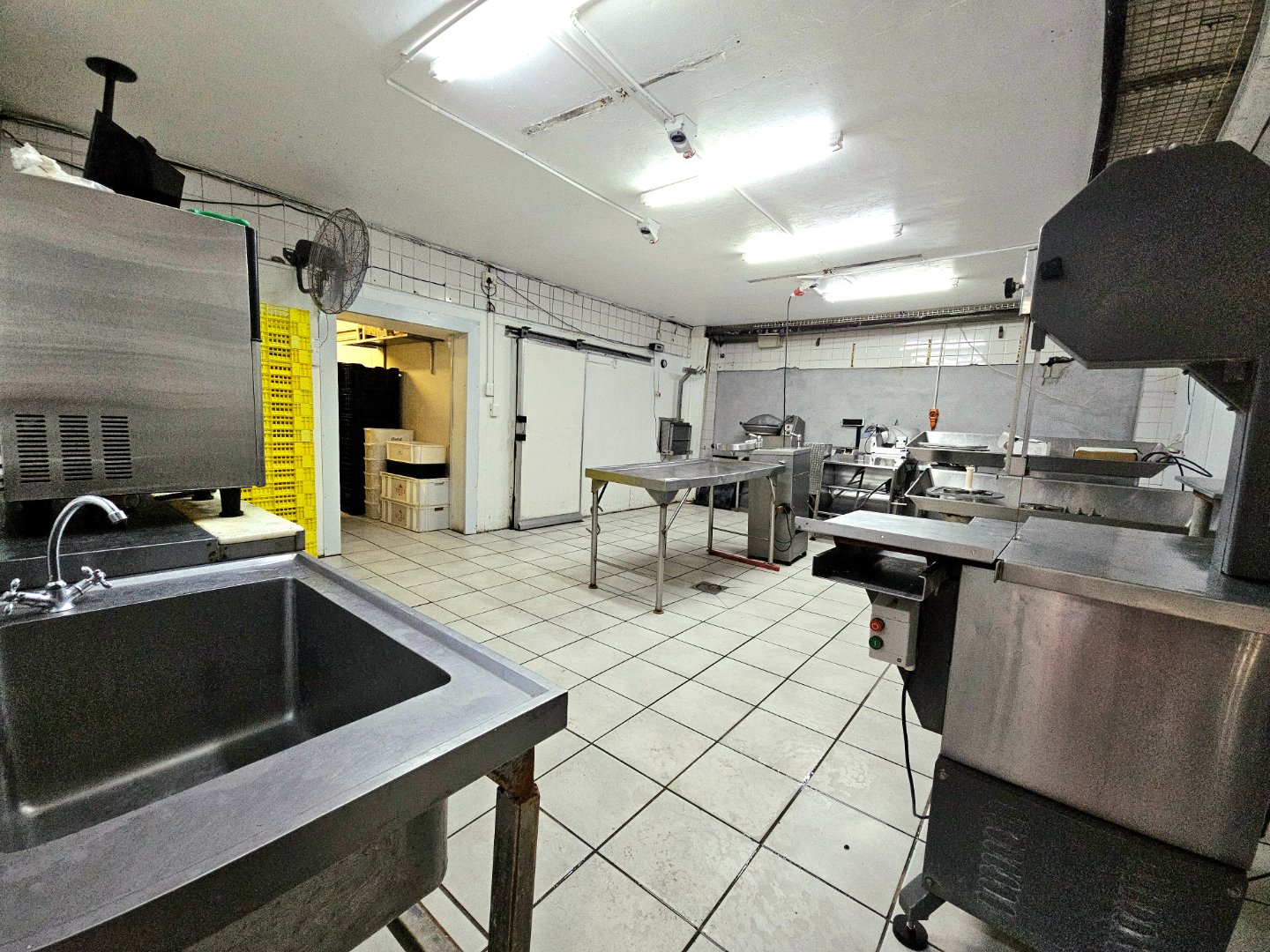 The shop area, which was previously utilised as a butchery, consists of two cold rooms, a freezer room, and an office.