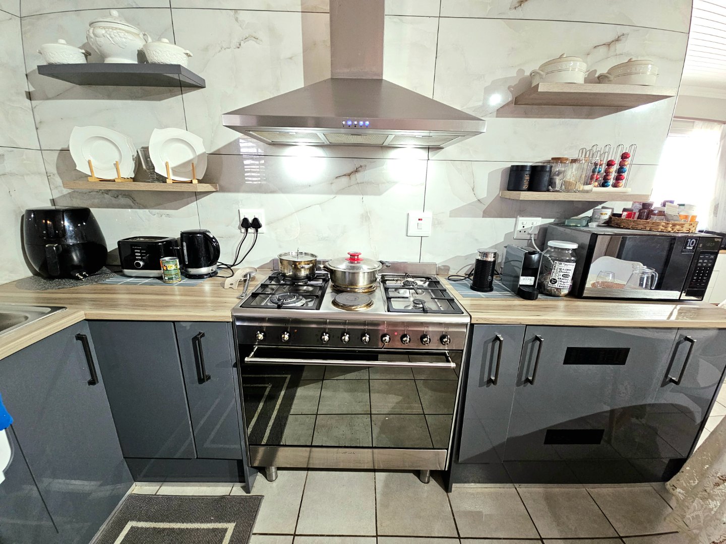 Two x 3 bedroom apartments, which has been newly renovated has presented itself to the market. Each apartment consists of a spacious lounge and an open plan fully fitted kitchen in both units. The property boasts with three spacious bedrooms with built in cupboards. The main bedroom has an air-conditioning unit in apartment one. Both units have one bathroom each. You are able to access both units via a spiral staircase which leads outside and directly to the shop area of the property aswell. The shop area has its own independent cloakroom.