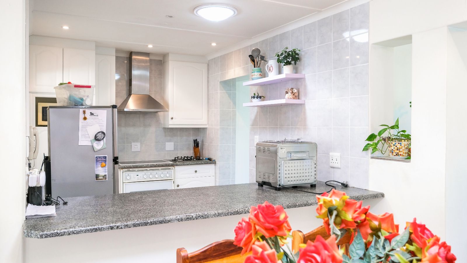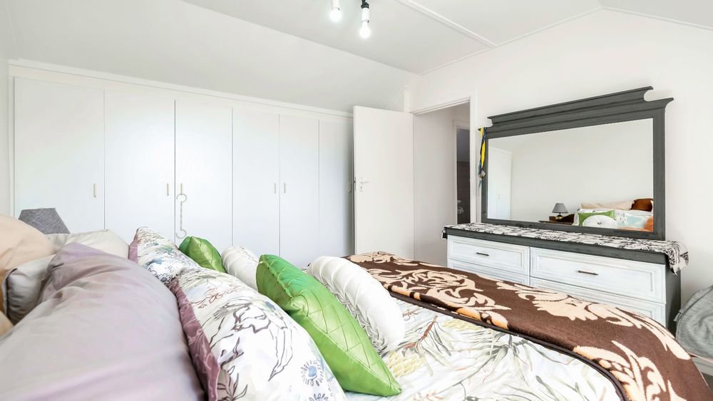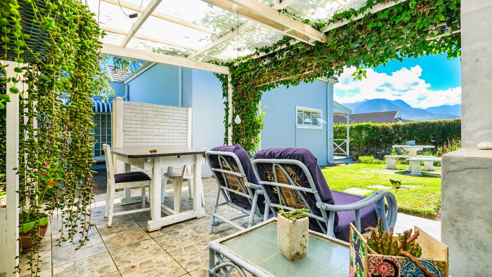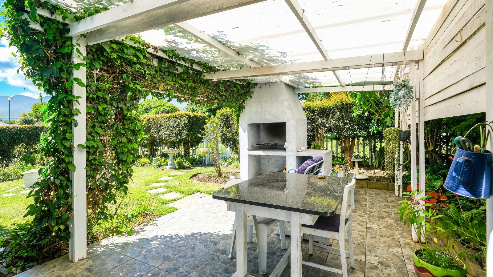 Step outside to the covered braai area, featuring a built-in braai, perfect for hosting friends and family while enjoying those incredible mountain views. A double garage provides secure parking and added storage.