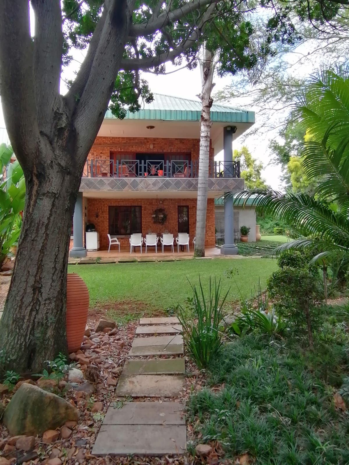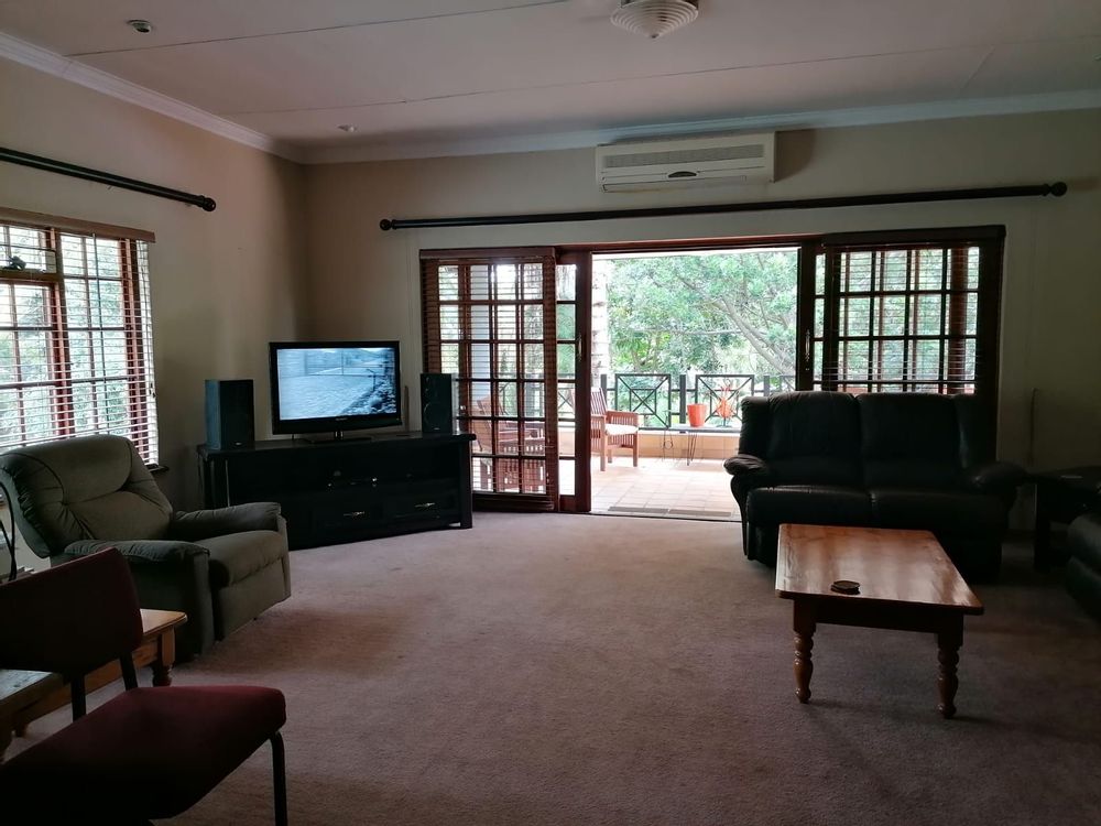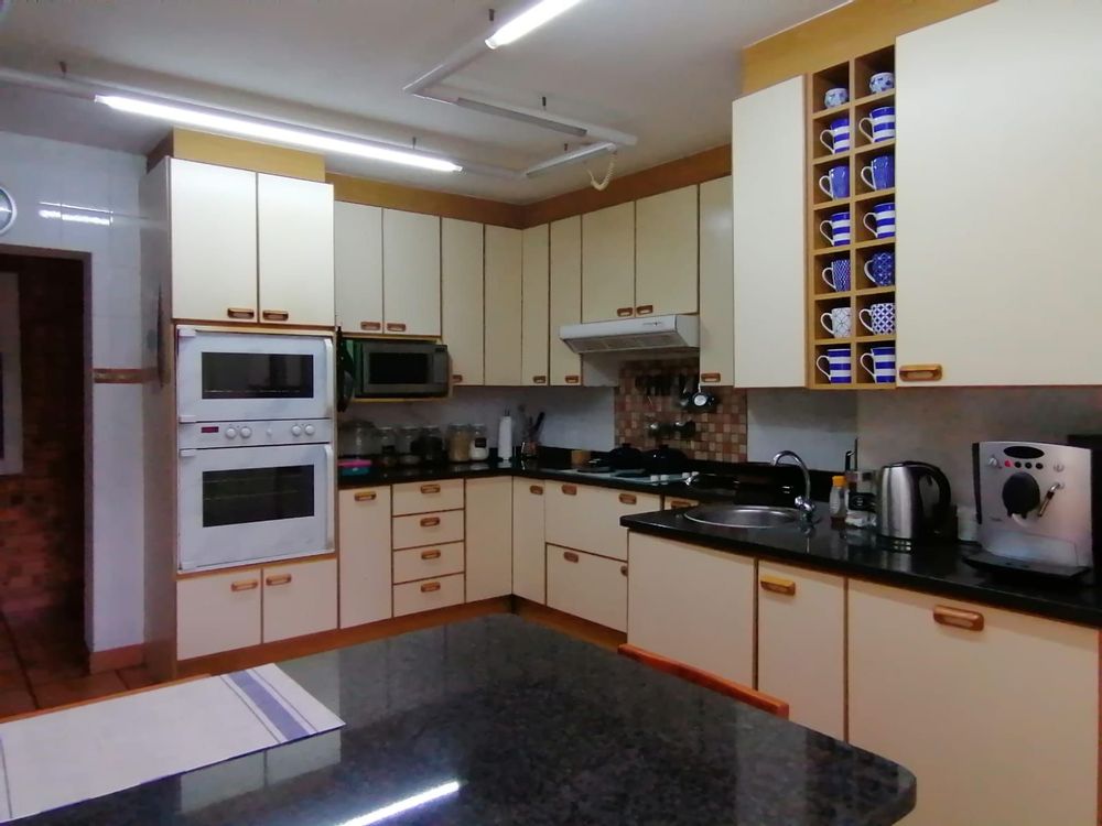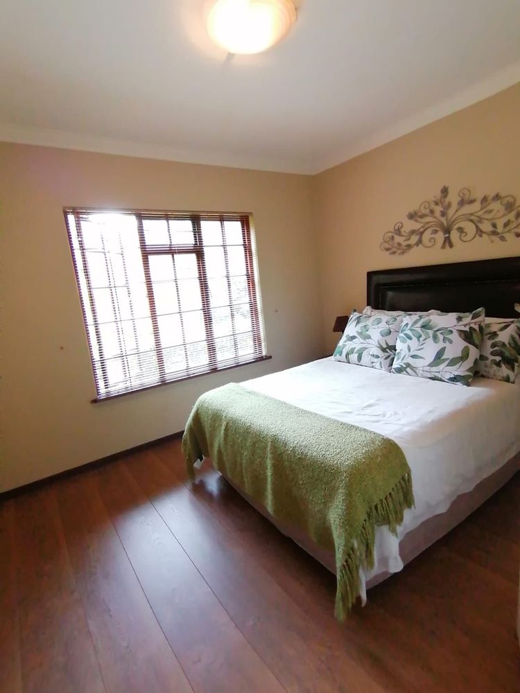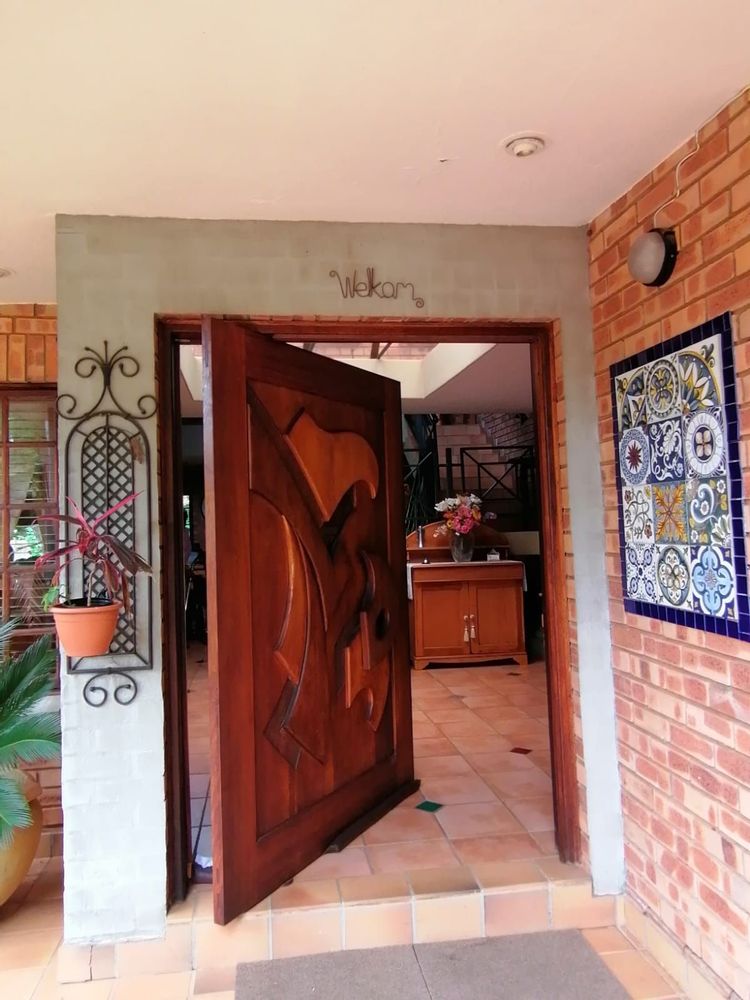 A Light, bright and Spotless Double Storey Home offers a Entrance Hall leading to Formal and Informal Living areas. Well-placed Dining Room near the well-equipped Kitchen. Covered Entertainment Area with Built-In Braai leading to the Landscaped Garden. Guest Bedroom with En-Suite Bathroom in the Left Wing. Right Wing: Main Bedroom with En-Suite Bathroom and 3 other Bedrooms with 2 Full Bathrooms. (All North-facing and lots of Cupboards.) Upper Level: Large Office with Open-plan Kitchen and Bathroom with own entrance. (Air conditioned.) Excellent Security with an Alarm System and an Electric Fence, plus a Back-up Electrical System...Beautiful on the outside...Spacious and Stylish in the house....An Absolute...Must See!