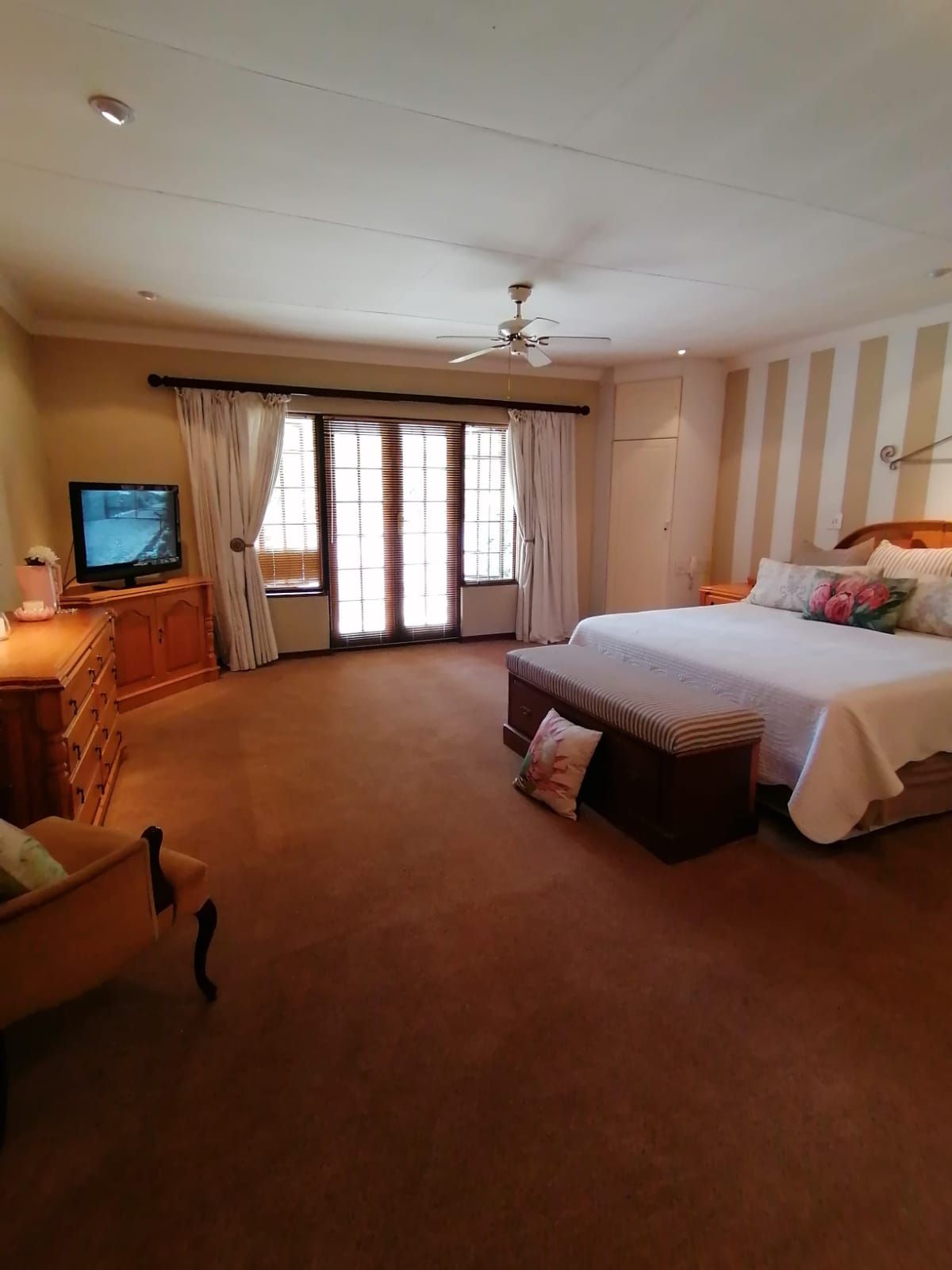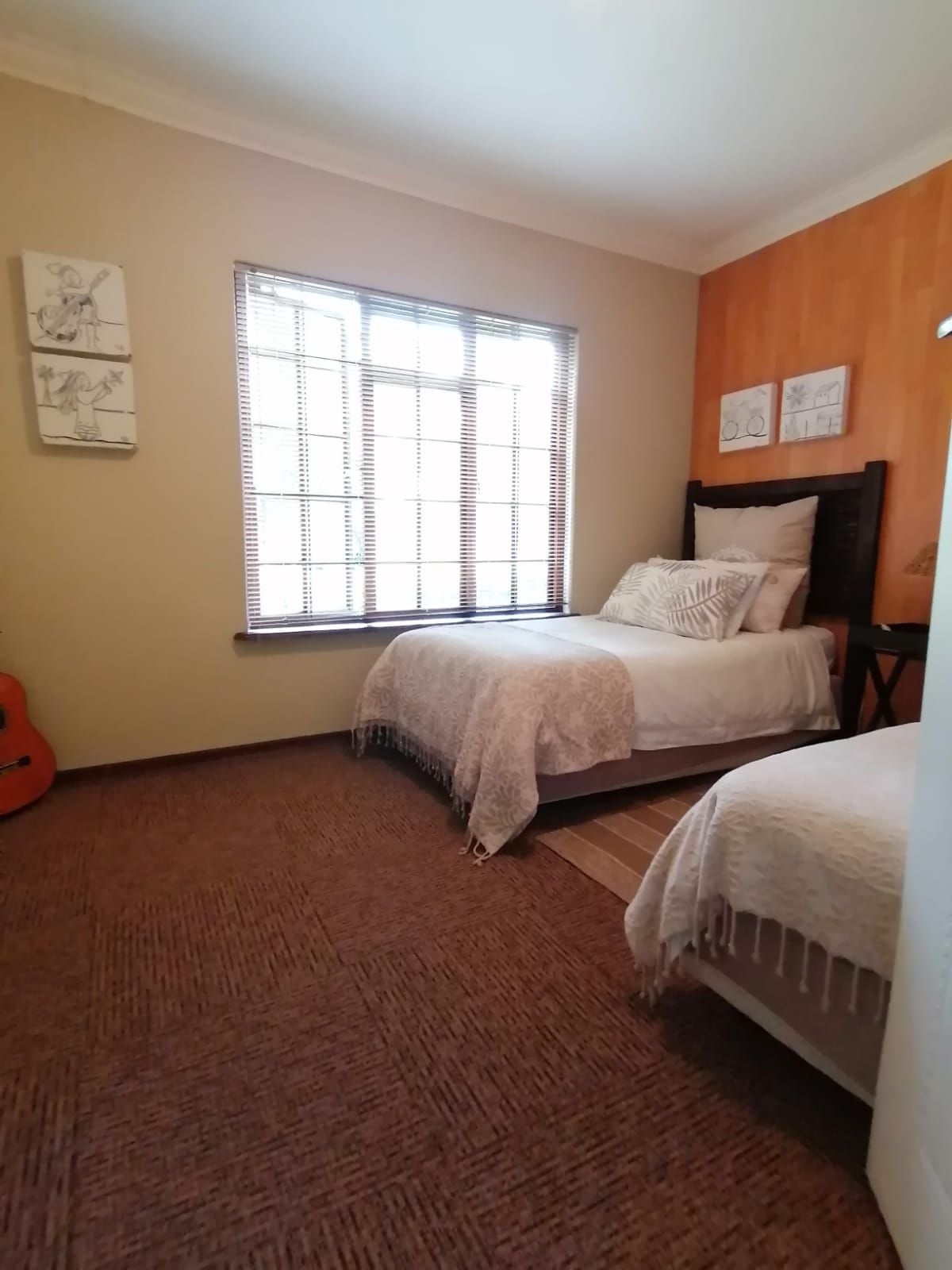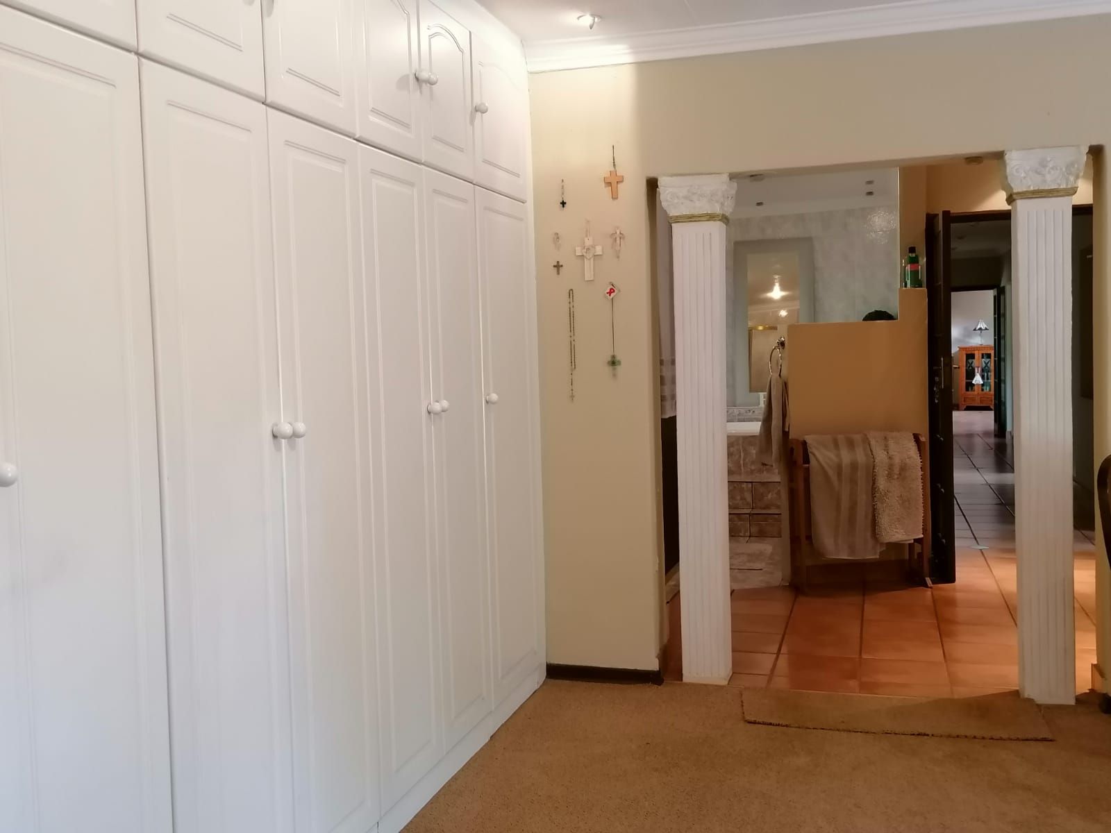 A Light, bright and Spotless Double Storey Home offers a Entrance Hall leading to Formal and Informal Living areas. Well-placed Dining Room near the well-equipped Kitchen. Covered Entertainment Area with Built-In Braai leading to the Landscaped Garden. Guest Bedroom with En-Suite Bathroom in the Left Wing. Right Wing: Main Bedroom with En-Suite Bathroom and 3 other Bedrooms with 2 Full Bathrooms. (All North-facing and lots of Cupboards.) Upper Level: Large Office with Open-plan Kitchen and Bathroom with own entrance. (Air conditioned.) Excellent Security with an Alarm System and an Electric Fence, plus a Back-up Electrical System...Beautiful on the outside...Spacious and Stylish in the house....An Absolute...Must See!