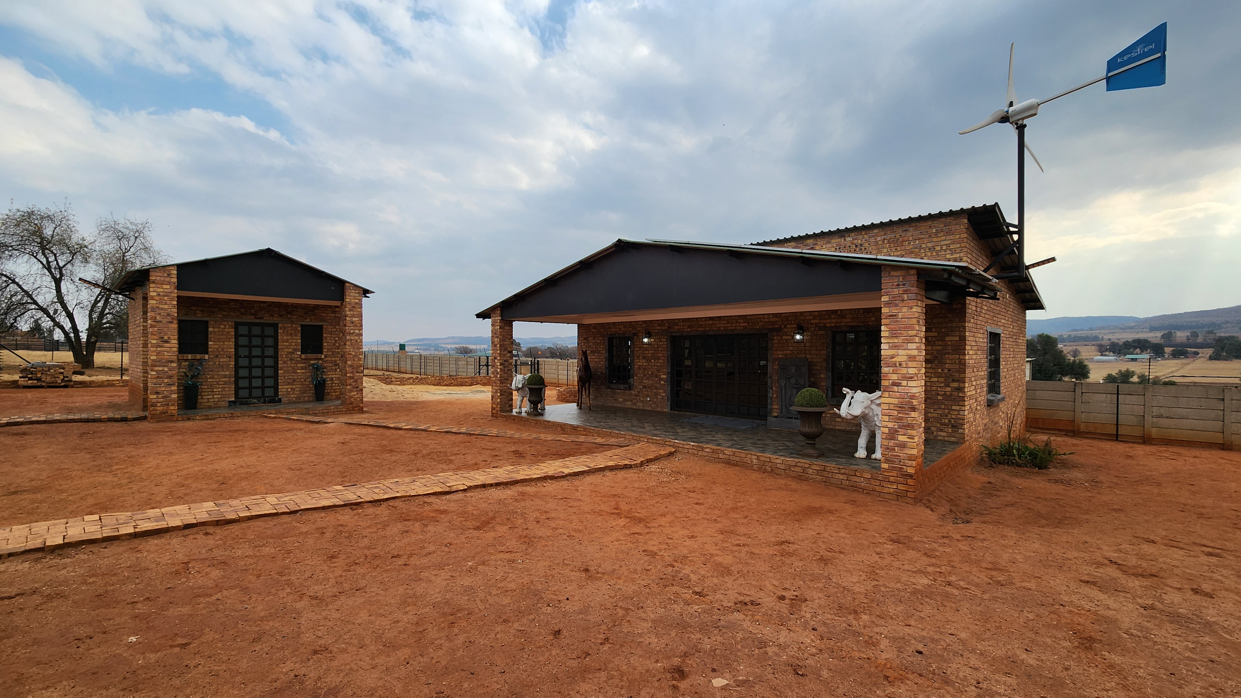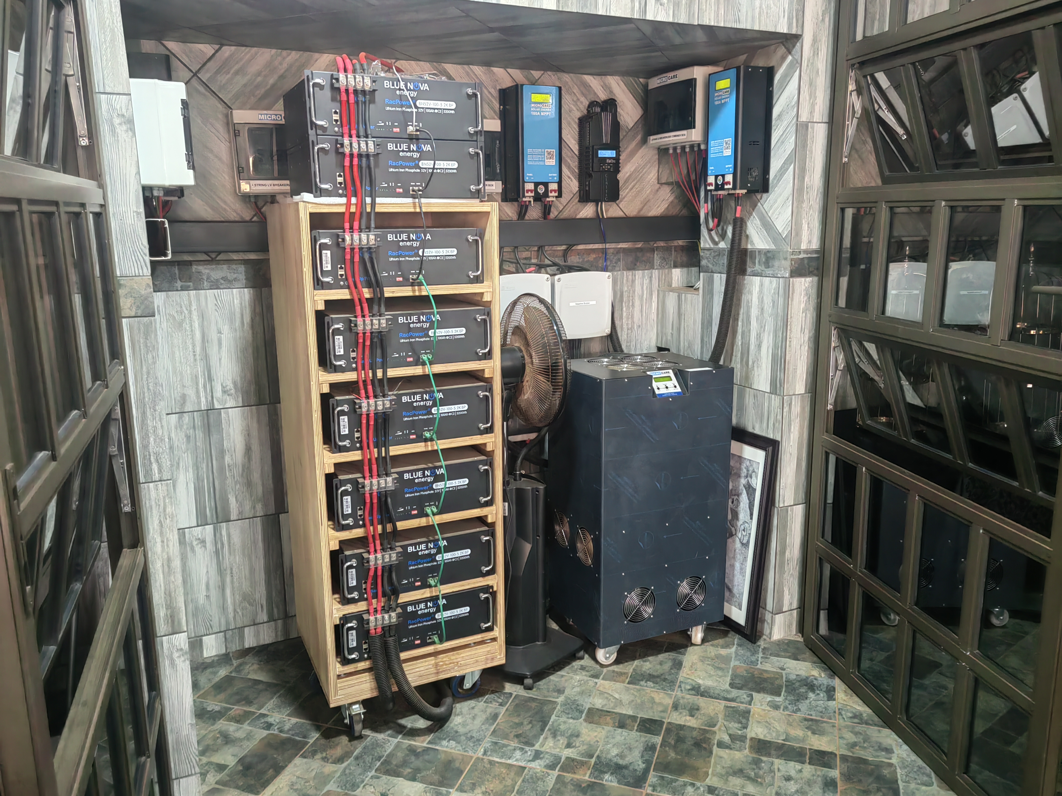 Solar system with 8 x 5.2 kw batteries and 32 x 575 watt solar panels 42 kw single phase as well as a 1 kw wind turbine.