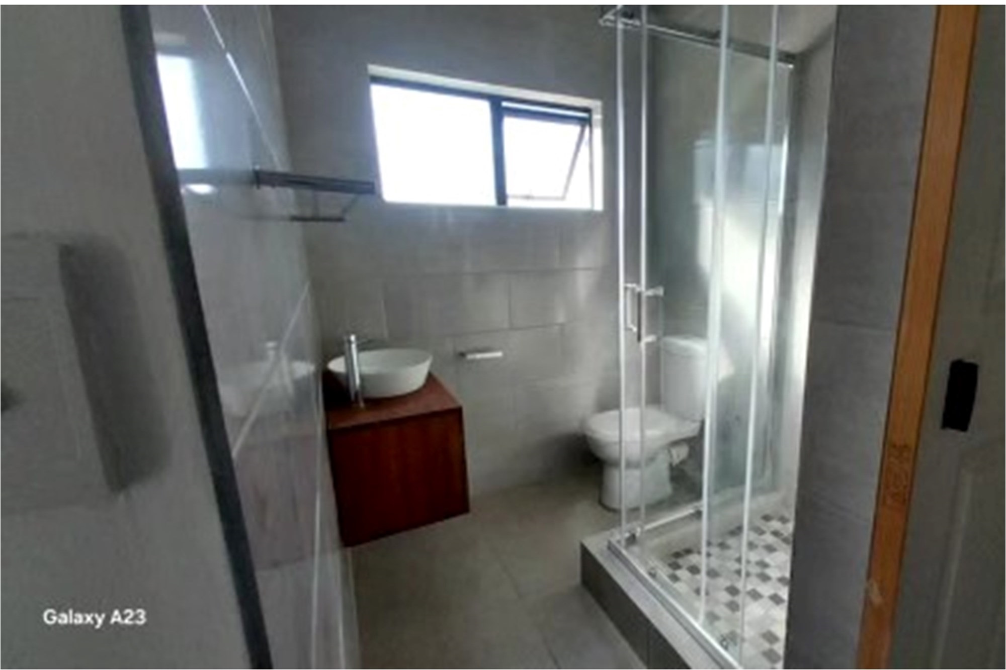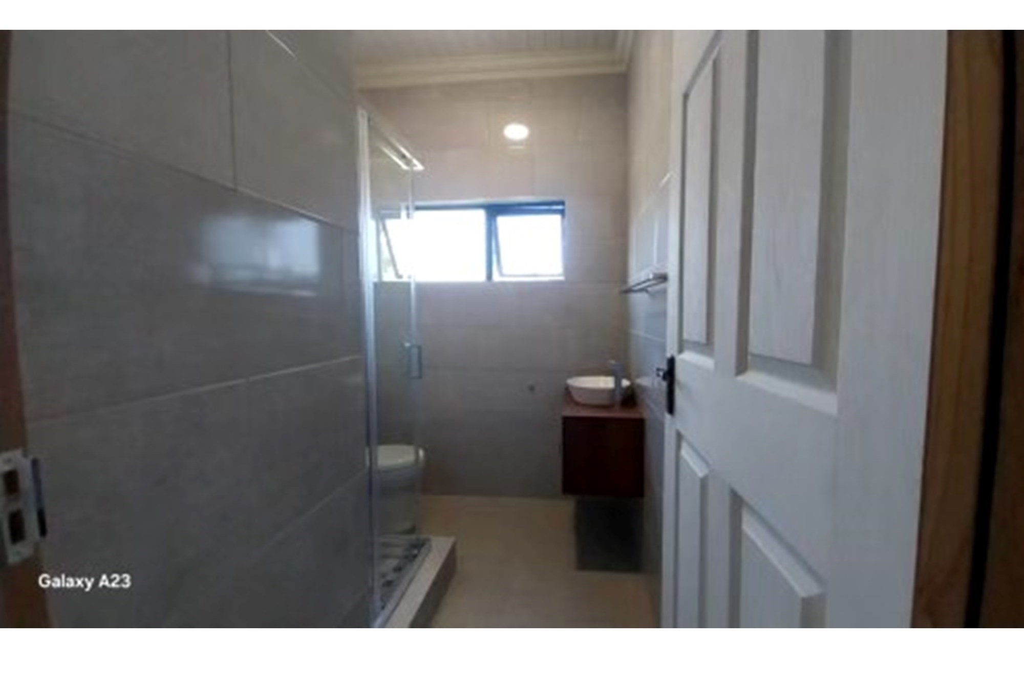(The sleek bathroom with tiled finishes and premium sanitaryware)